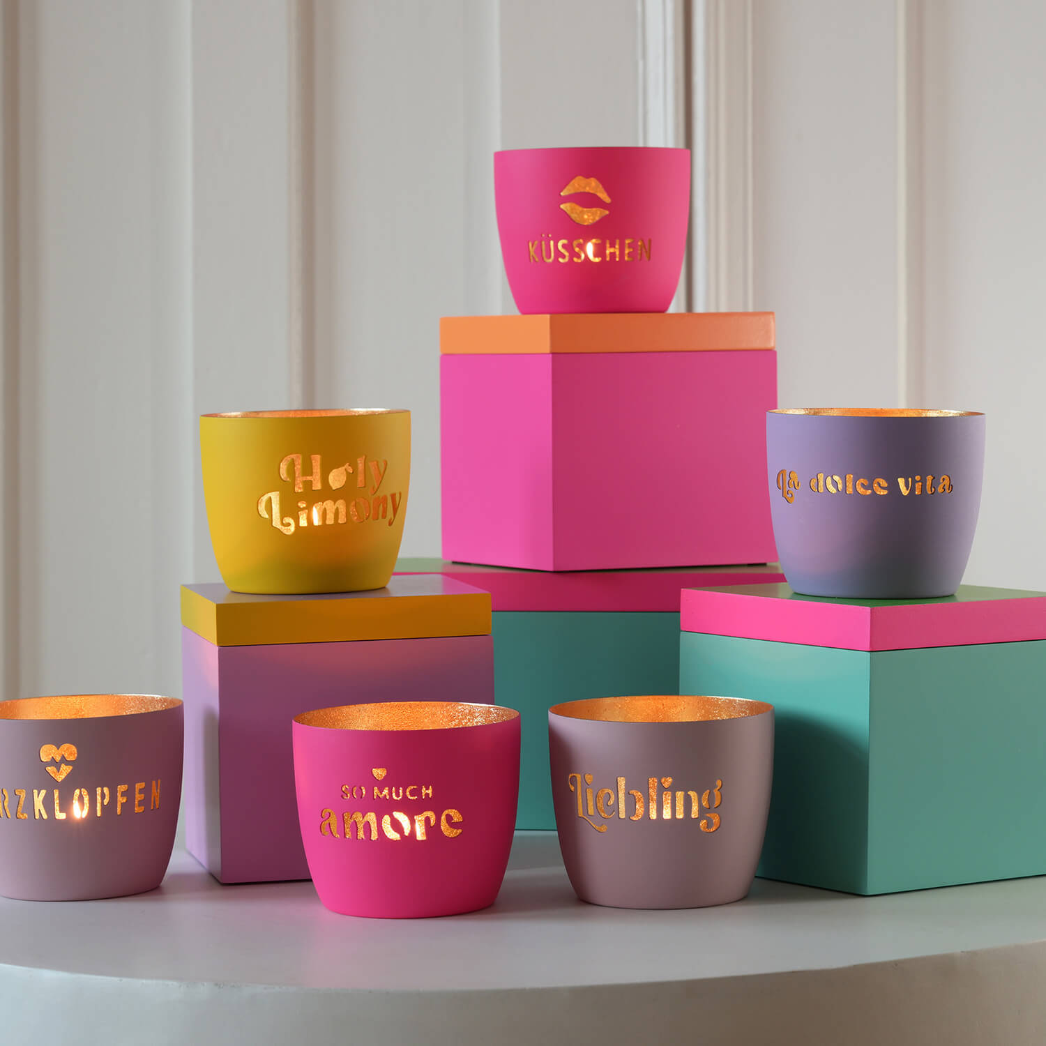 Kerzenhalter "L'amour - Lippe" im 3er-Set - 4x4,2x6,5 cm (Rosa/Rot/Orange)
