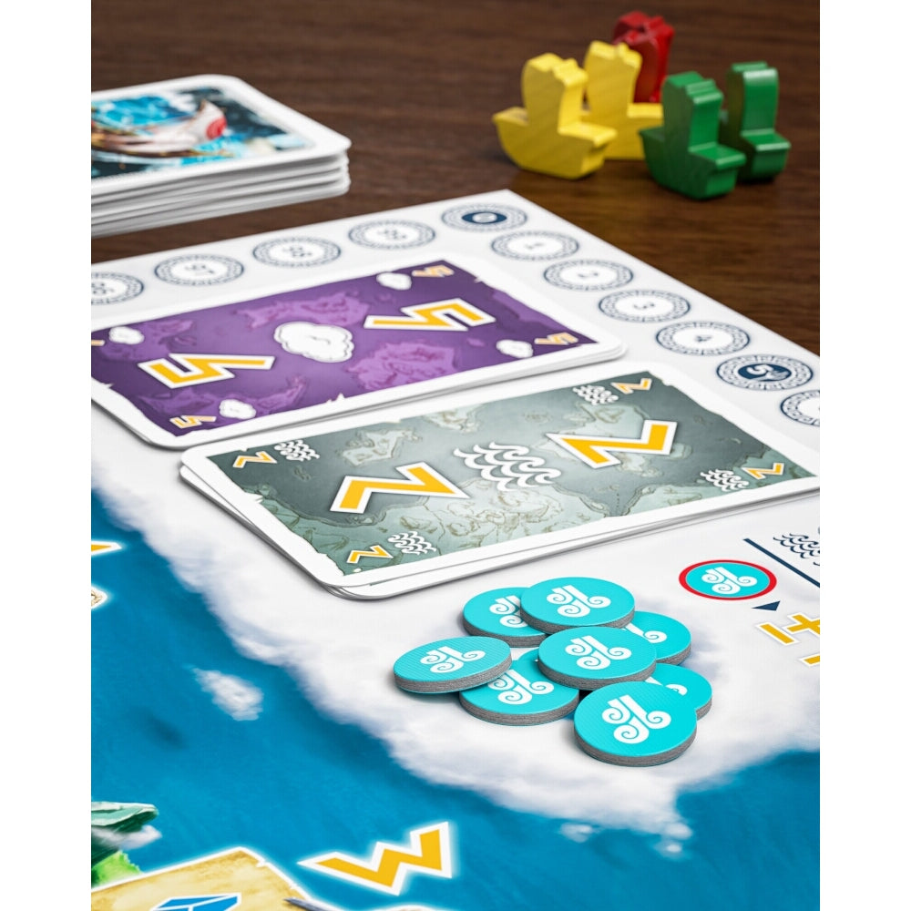Willkommen im Inselreich von Aeolos! Der Herrscher über die Winde lädt die Spieler als Seefahrende zu einem Wettstreit ein - und dieser ist kurzweilig, taktisch und rasant. Denn auf den Inseln der Winde kämpfen alle ständig gegen die Zeit!
