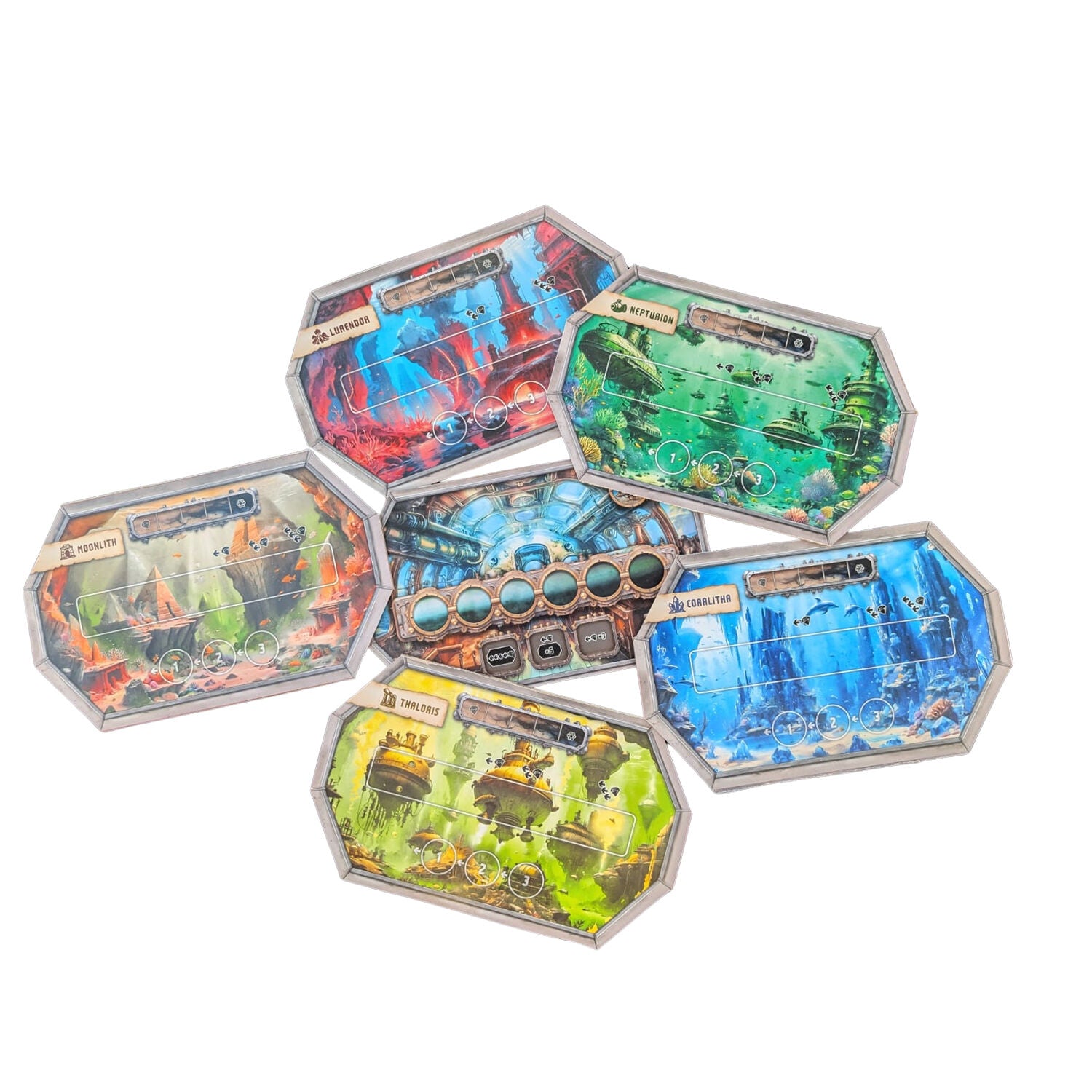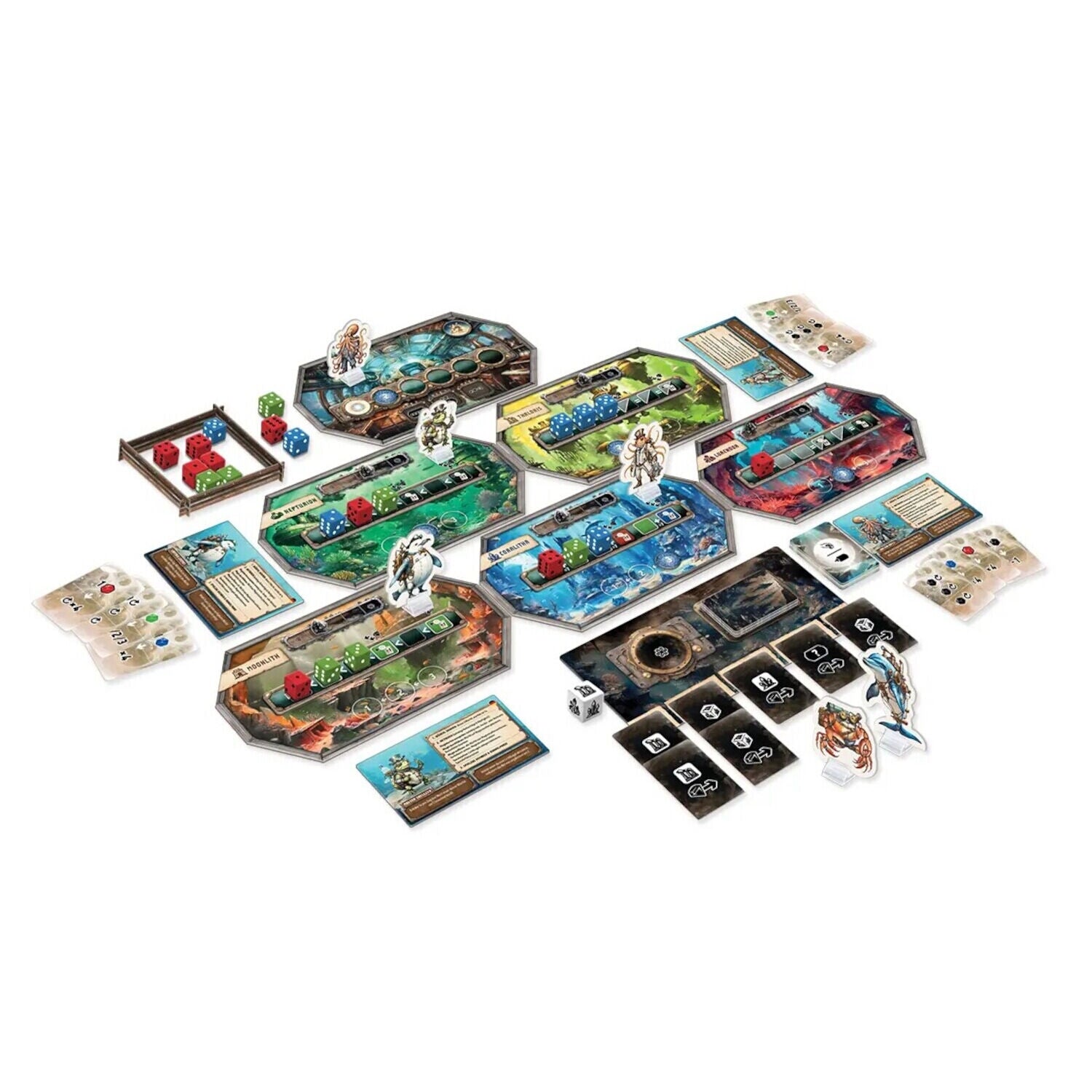 Mit euren magischen Fähigkeiten könnt ihr die Dunkelheit zwar eine Zeit lang aufhalten; doch besiegen könnt ihr sie nur, wenn ihr eure Kräfte bündelt! Findet die mächtigen Lichtkugeln, die in den fünf Welten verborgen sind. Die Zukunft Aqualumas liegt in euren Händen! Ihr platziert Würfel auf Magiestreifen – und bringt das rettende Licht zur Tauchstation. Mit Magiekarten bewegt ihr euch strategisch durch Aqualuma oder nehmt gezielt Einfluss auf die Würfel. Nutzt die individuellen Spezialfähigkeiten eurer Charaktere und stimmt euch mit den anderen Heldinnen und Helden ab – denn nur im Team könnt ihr das Rätsel der Tiefe lösen und die Bedrohung zurückdrängen. Das Spiel bietet einen leichten Einstieg für Familien. Durch einfache Anpassungen ist es aber auch für Kennerspieler:innen eine echte Herausforderung!