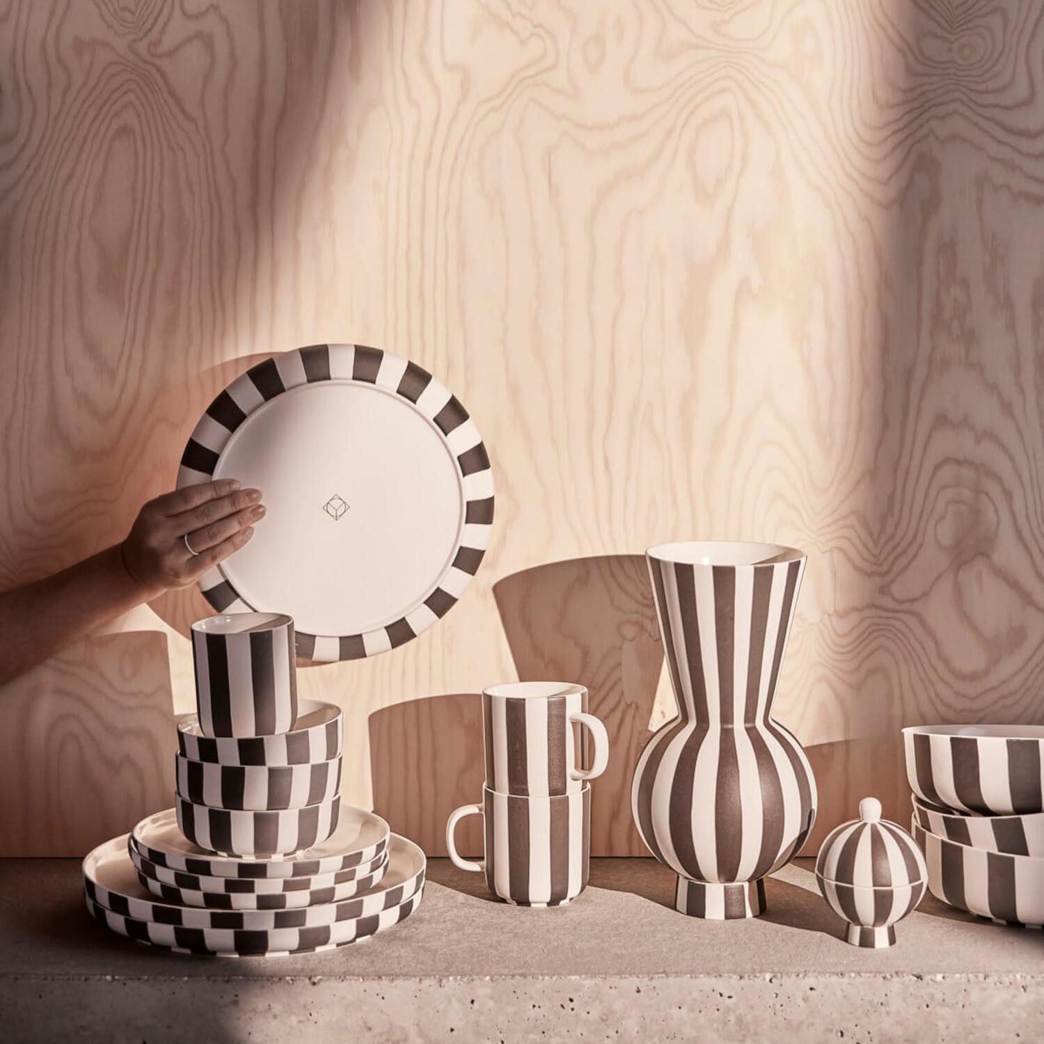 Willkommen in der zauberhaften Welt von skandinavischem Design mit der"Toppu" Bonbonniere von Oyoy. Diese edle Aufbewahrungsdose verleiht deinem Zuhause eine elegante Note und ist dabei ebenso funktional wie ästhetisch. Die "Toppu" Serie, bekannt für ihre markanten Streifenmuster und die harmonische Kombination aus Form und Farbe, bringt einen Hauch von Luxus in deinen Alltag. Ob du die Bonbonniere als stilvolles Versteck für deine liebsten Süßigkeiten nutzt oder kleine Schätze darin aufbewahrst - sie wird garantiert zum Blickfang in jedem Raum. Das feine Zusammenspiel von harmonischen Farbtönen vermittelt eine ruhige und gleichzeitig verspielte Atmosphäre, die sich perfekt in jede Einrichtung einfügt.