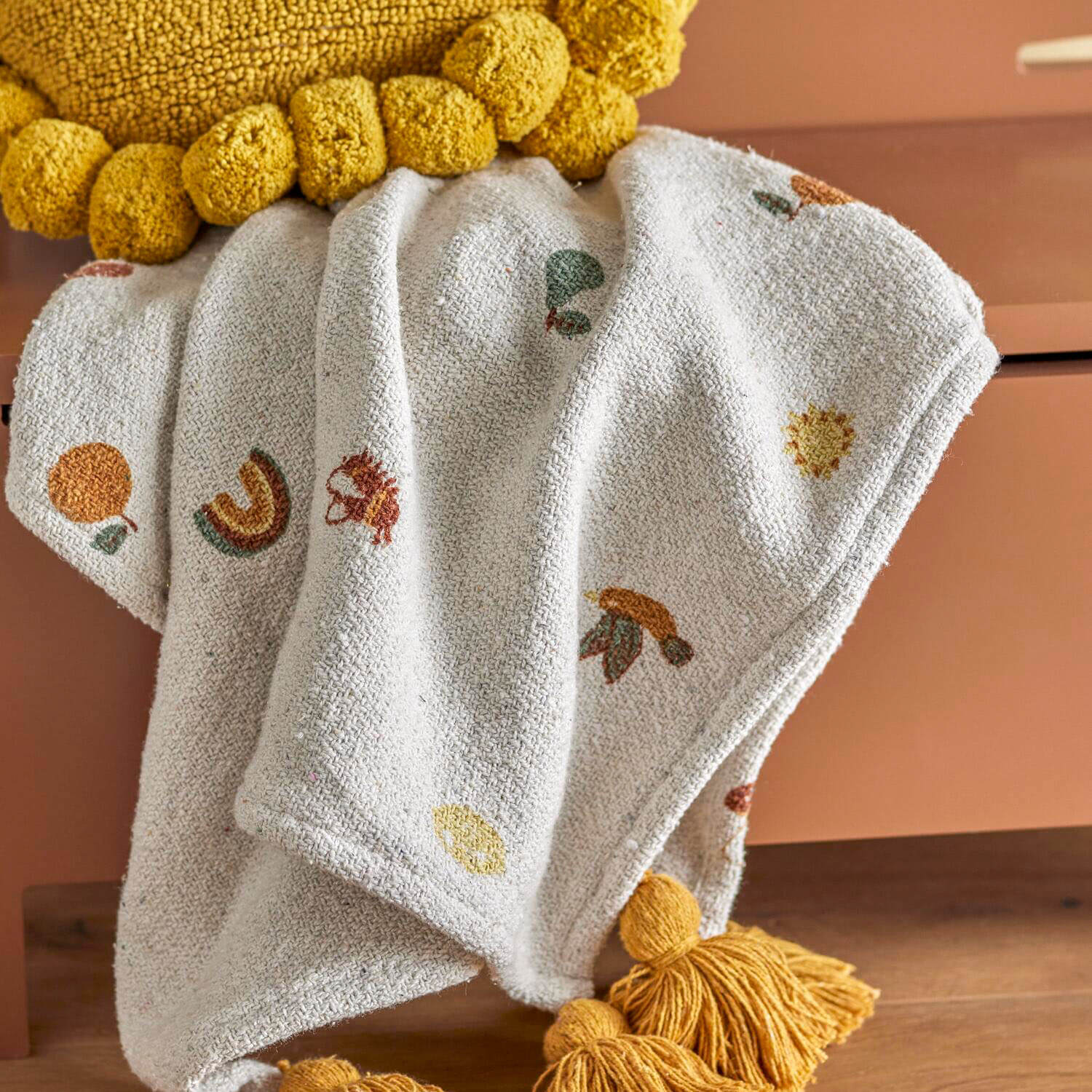 Die "Agnes" Decke von Bloomingville MINI ist die perfekte Kuscheldecke für kleine Abenteurer! Aus hochwertigen, weichen Materialien gefertigt und mit bezaubernden Motiven verziert, bringt sie eine liebevolle Note ins Kinderzimmer. Die sanften Naturtöne fügen sich harmonisch in jede Einrichtung ein.