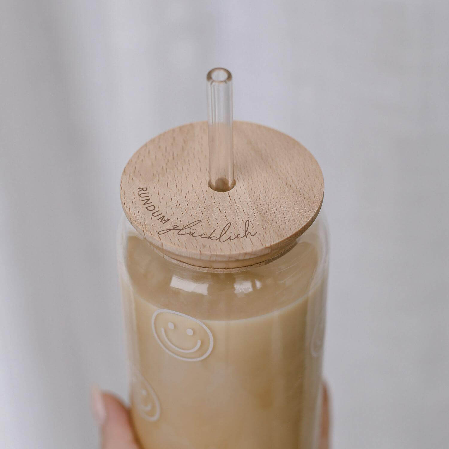 Der Deckel harmoniert besonders gut mit hohen Trinkgläsern sowie Glas‑Strohhalmen und fügt sich unaufdringlich in verschiedene Einrichtungsstile ein — von skandinavisch‑klar bis gemütlich‑natürlich.