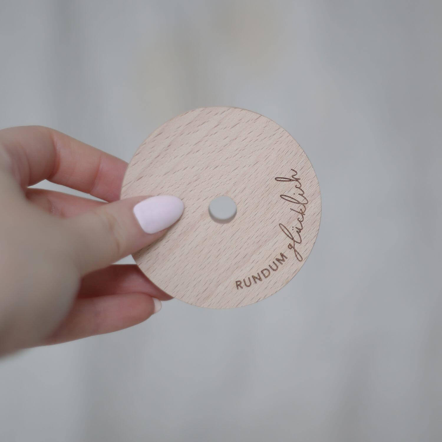 - Liebevoll texturiertes Design – die Oberseite trägt den Spruch „Rundum glücklich“ in dezenter Gravur und verleiht dem Deckel Persönlichkeit.
