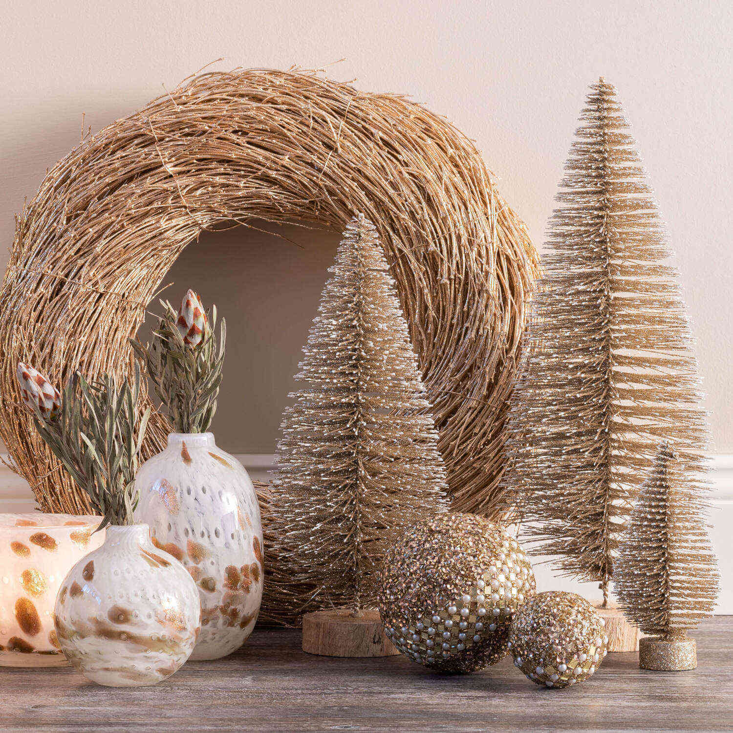 Dekobaum mit Glitzer "Seoul" (Gold) - 15x40x15 cm