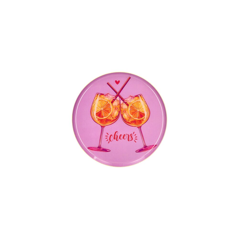 - Love Trays, Dekotablett, XS, Motiv: Cheers, rund, rosa