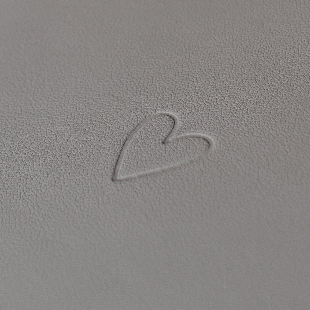Das Platzset ist beidseitig nutzbar. Eine Seite zeigt sich in edlem Anthrazit und trägt den zarten Schriftzug „Wie schön, dass du da bist“. Die Rückseite erscheint in einem weichen, hellen Grauton mit geprägtem Herzsymbol. Auf der hellen Seite ergänzt ein kleiner Eulenschnitt-Schriftzug am unteren Rand das dezente Design. Beide Seiten überzeugen mit ruhiger Ästhetik und lassen sich wunderbar mit unterschiedlichsten Tischdekorationen kombinieren.