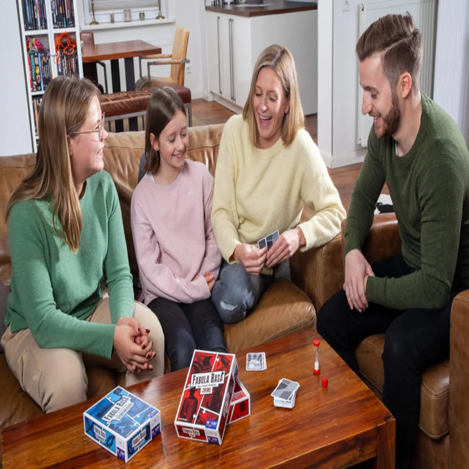 Bei FABULA RASA erzählen die Spieler reihum eine sich stetig ändernde Geschichte, so wie das typisch für mündliche Überlieferungen ist. Die Motive auf den Karten geben dabei visuelle Stichpunkte für zentrale Personen, Gegenstände und Orte der Handlung vor, die in der richtigen Reihenfolge erinnert werden müssen. Kreativ und herausfordernd fürs Gedächtnis ist, dass in jeder Runde Karten verschwinden und neue hinzukommen. Wem es als Erzähler gelingt, seine Version der Story fehlerfrei zum Besten zu geben, wird entsprechend belohnt.