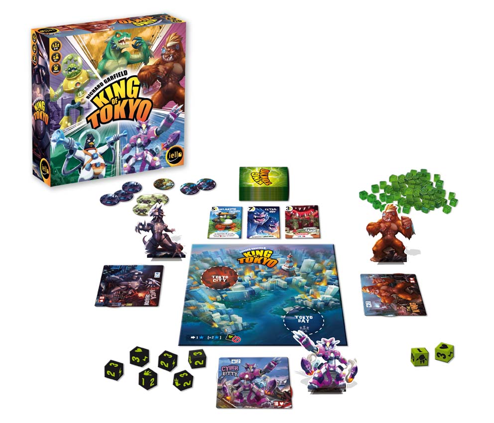 In King of Tokyo schlüpft ihr in die Rollen mutierter Monster, randalierender Riesenroboter oder abscheulicher Aliens. In diesem chaotischen und aberwitzigen Spiel drescht ihr in euren neuen Rollen dann kräftig aufeinander ein. Schadenfreude inklusive! Lasst die Würfel rollen und wählt eure Taktik: Wollt ihr eure Gegner angreifen? Eure Wunden heilen? Oder doch lieber eure Monster aufpowern? Wie auch immer: Lasst den Hammer kreisen auf eurem Weg zum Spielsieg!