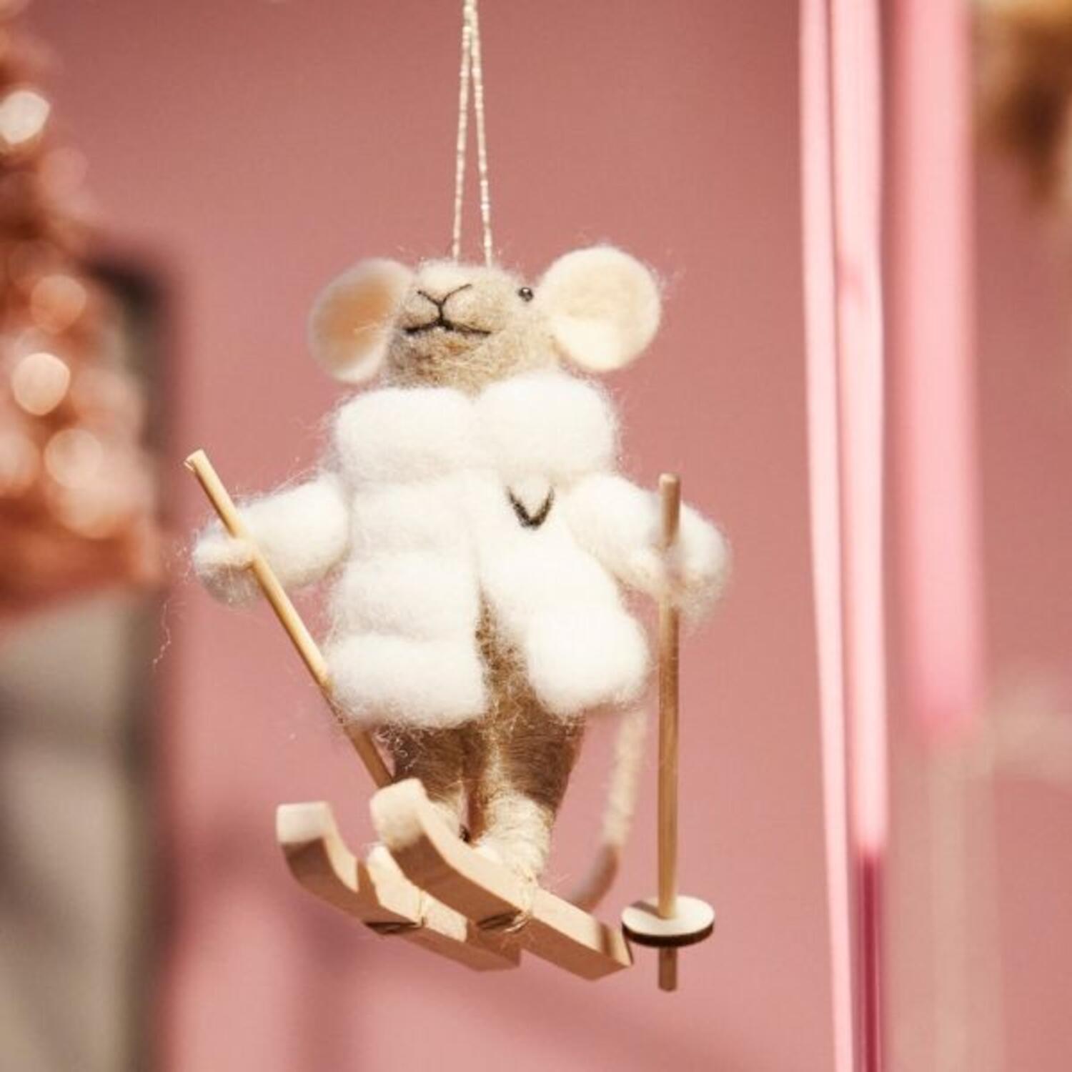 Filz-Anhänger "Skimäuschen" - 8x9x12 cm (Bunt)
