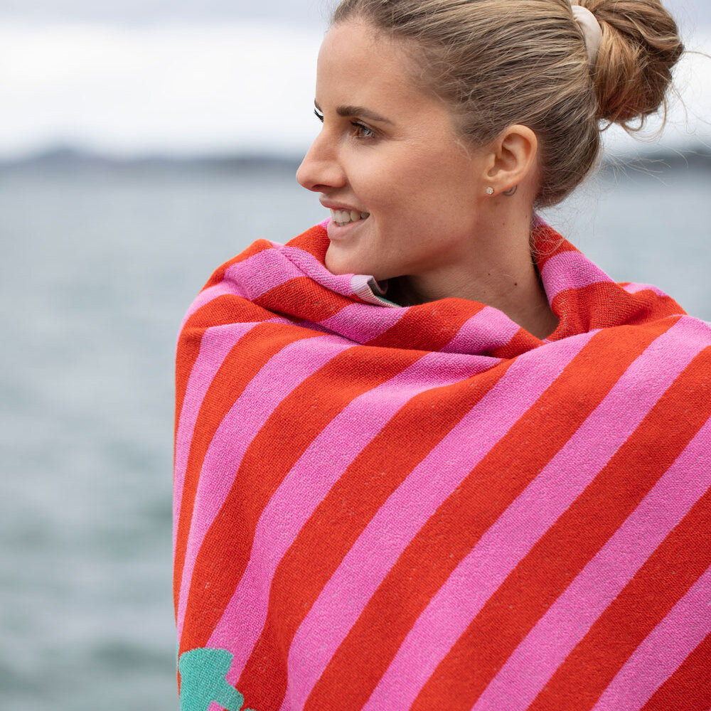 Ob am Strand, im Freibad oder auf der Wiese – dieses Frottee-Strandtuch darf nicht fehlen. Flauschig-weich, saugfähig und großzügig im Format, ist es der perfekte Begleiter für Sonne, Wasser und entspannte Stunden. Einfach ausbreiten, wohlfühlen und den Sommer genießen.