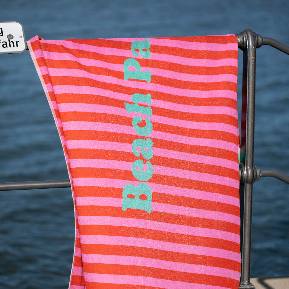 Frottee-Strandtuch "PLAYA - Beach Party" - 100x180 cm (Dunkelorange)