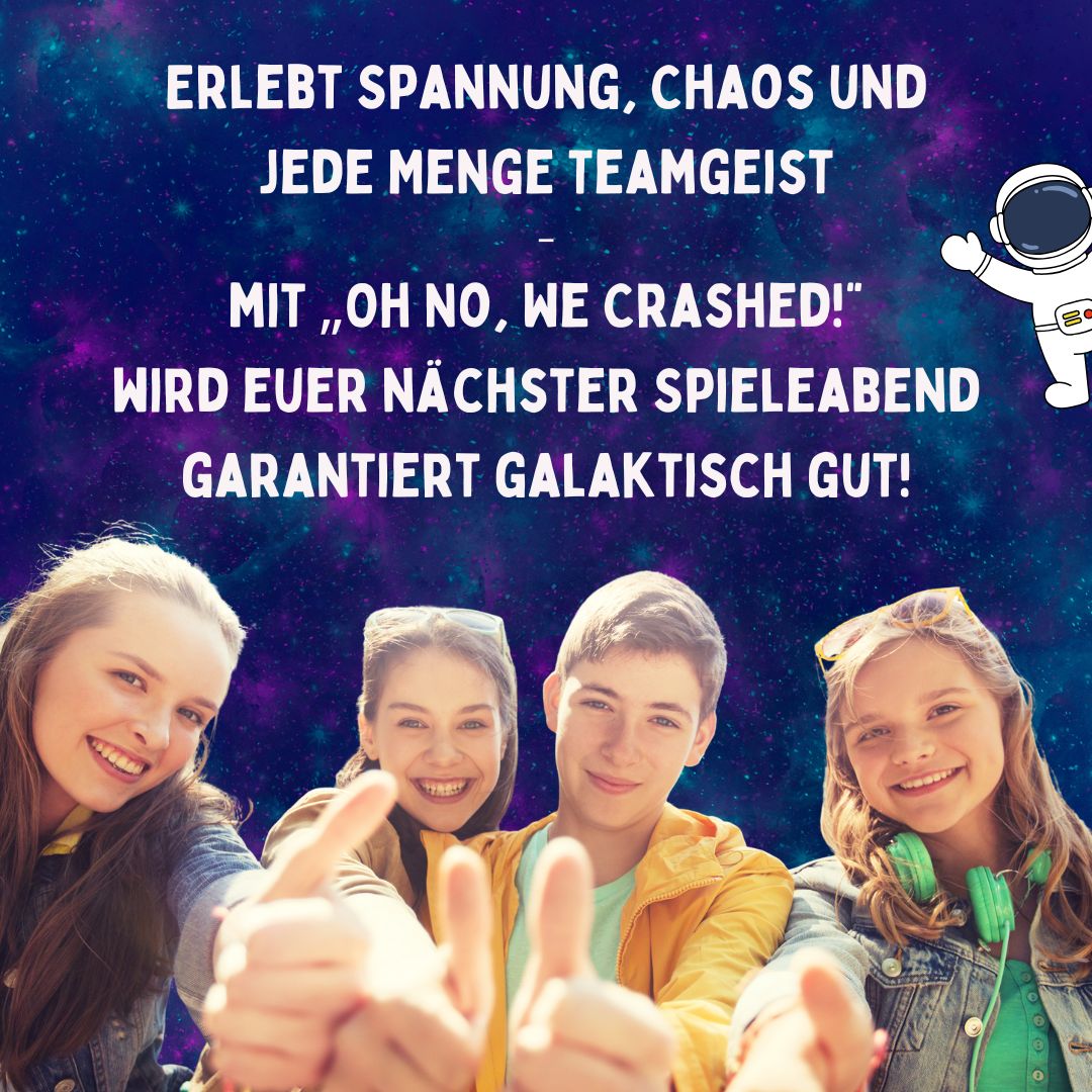 Willkommen zu „Oh no, we crashed“, einem aufregenden WELTRAUM SPIEL, das euch in die unendlichen Weiten des Alls entführt! Ihr und eure Mitspieler haben die Herausforderung angenommen, ein altersschwaches Raumschiff zu reparieren, das euch beim Kauf vielversprechend erschien. Doch schon nach wenigen Minuten im Weltraum kommt ihr ins Schwitzen: Offene Kabel, blinkende Warnleuchten und ein unaufhaltsam näherkommender Planet stellen eure Nerven auf die Probe!