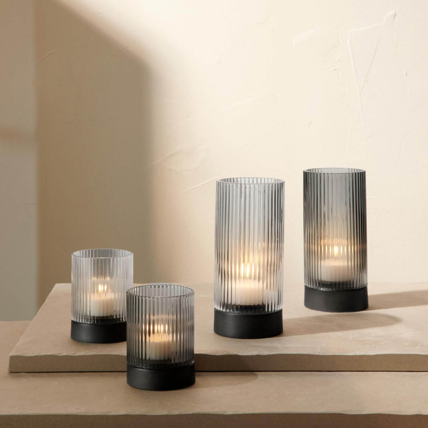 Glas Windlicht mit Porzellanfuß - 7x9,6 cm (Transparent)