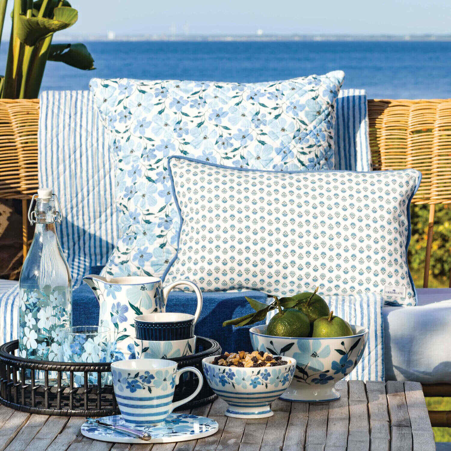 - Stilsicheres Design – das florale Muster in Blau erinnert an Küstenlandschaften und verleiht dem gedeckten Tisch eine frische, skandinavische Note.