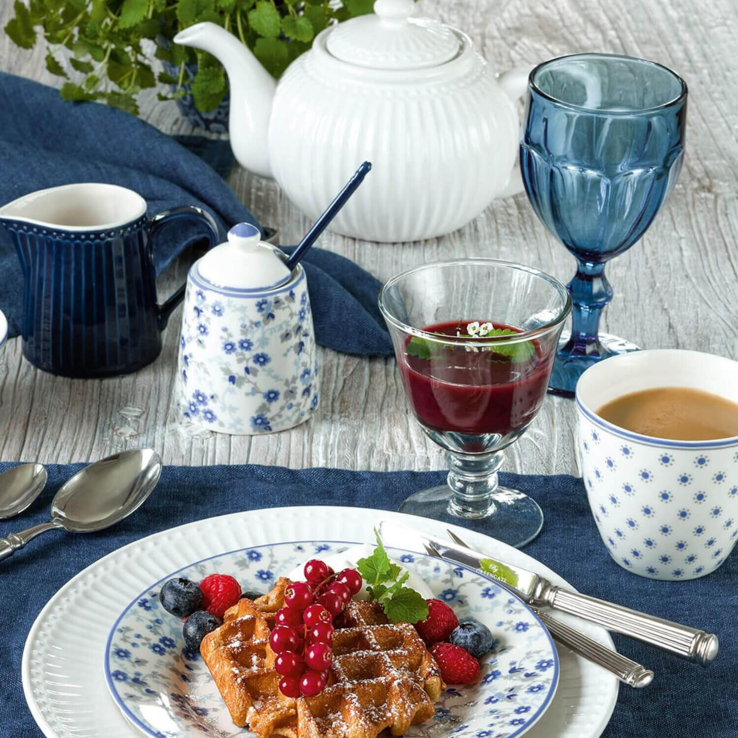Der Tischläufer von GreenGate bringt eine ruhige, ozeanblaue Stimmung auf deinen Esstisch und verleiht jeder Tafel eine elegante, einladende Note. Du schaffst damit im Handumdrehen eine Atmosphäre, die zu sonnigen Frühstücken, entspannten Abendessen oder besonderen Anlässen passt.