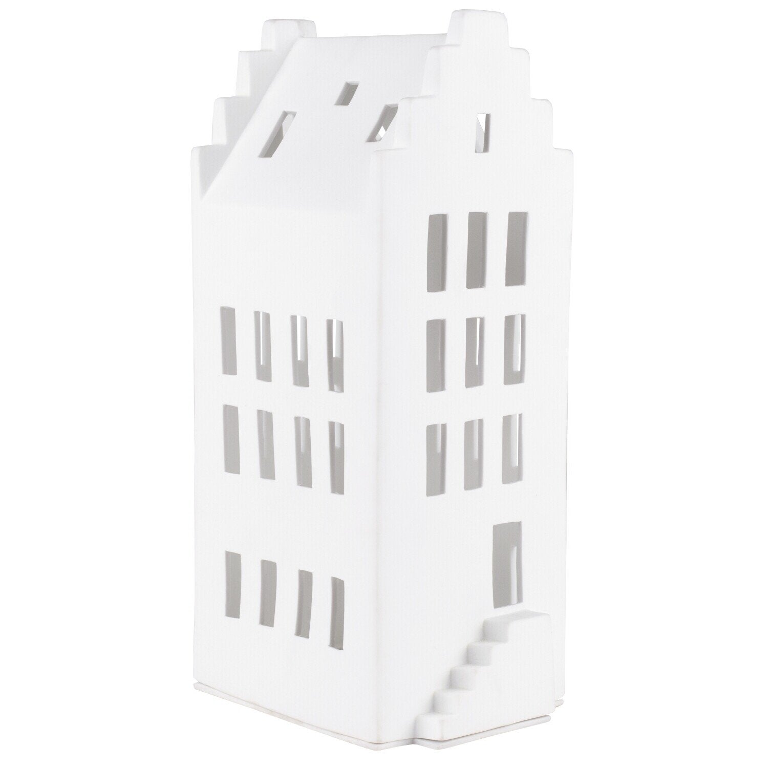 Das Große Lichthaus mit Giebeldach von räder Design ist ein stilvolles Dekorationsobjekt aus unglasiertem Porzellan. Mit seinem schlichten, modernen Design und den Fensterausschnitten sorgt es für eine gemütliche Lichtstimmung, wenn es mit einem Teelicht oder LED-Licht beleuchtet wird. Ideal als Teil einer festlichen Dekoration oder als dezenter Hingucker das ganze Jahr über.