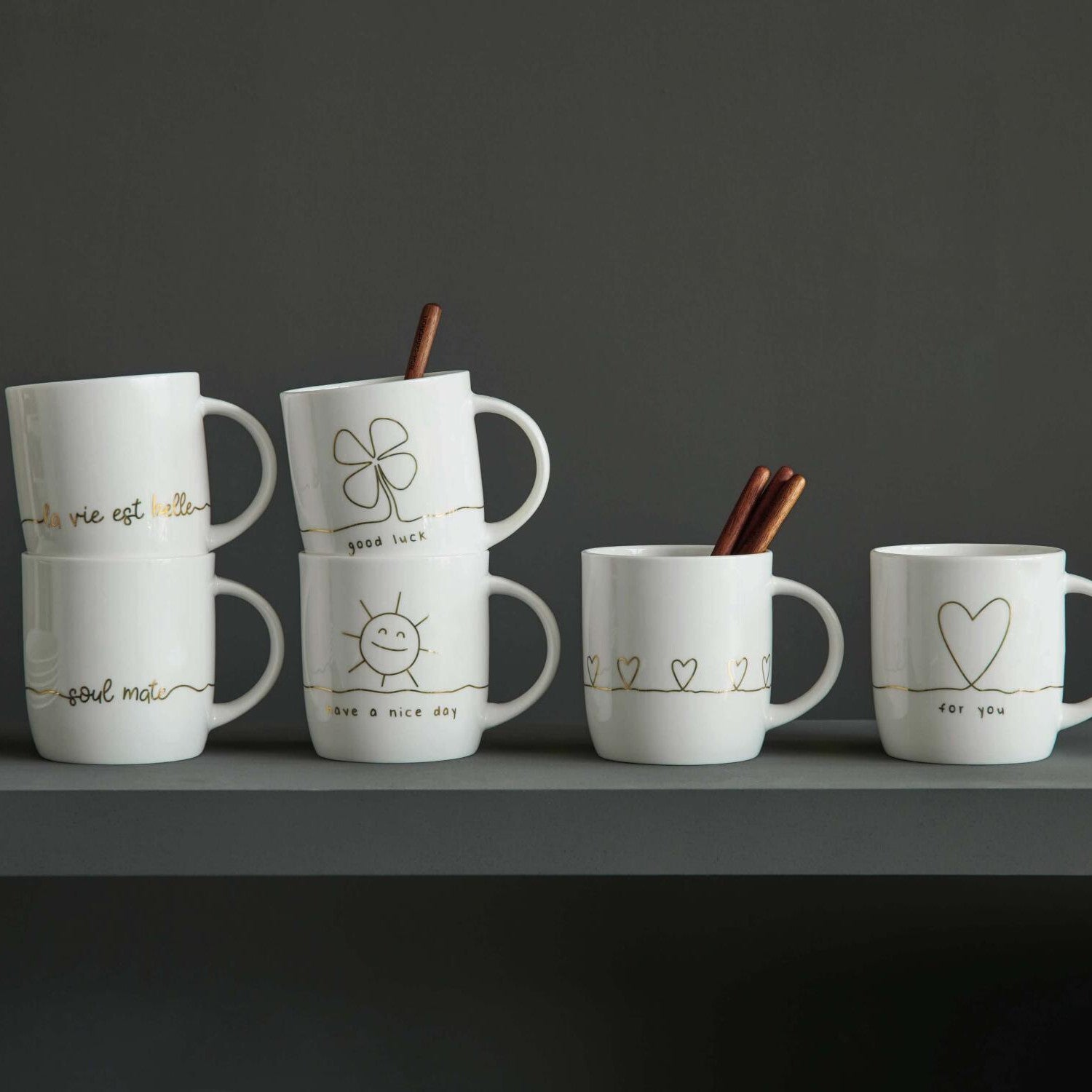 Henkelbecher "For You" - 350 ml (Weiß/Gold)
