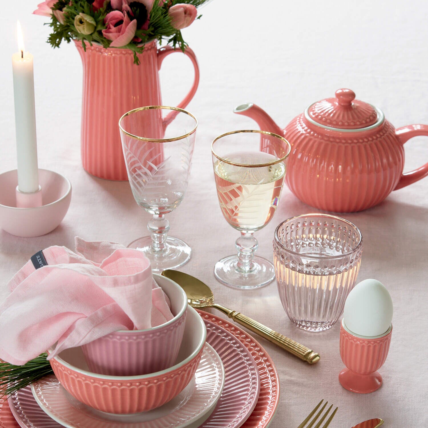 Alice ist die beliebte Everyday-Kollektion von GreenGate. Die dänische Lifeystyle-Marke bietet mit der Serie Alice ein wunderbar schlichtes Design, das sich perfekt zu allen anderen GreenGate-Serien kombinieren lässt. Das dezente Wellen-Muster mit kleinem filigranen Punkte-Rand lässt es aber auch einzeln voll erstrahlen. Jedes Jahr kommen weitere Farben hinzu, deren Farben sich auch in anderen GreenGate-Serien wiederfinden. Über Tassen, Teller, Schüsseln, Teekannen, Löffel, Eierbecher - Alice bietet die komplette Geschirr-Kollektion, die Ihren Alltag bereichert!