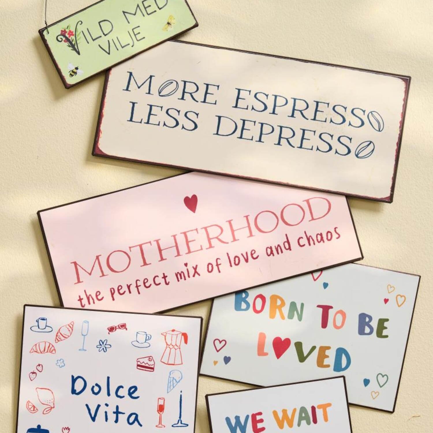 Verschönere deine Kaffeeecke und gib deinem Zuhause eine persönliche Note — mit einem kleinen Schild, das große Stimmung bringt.