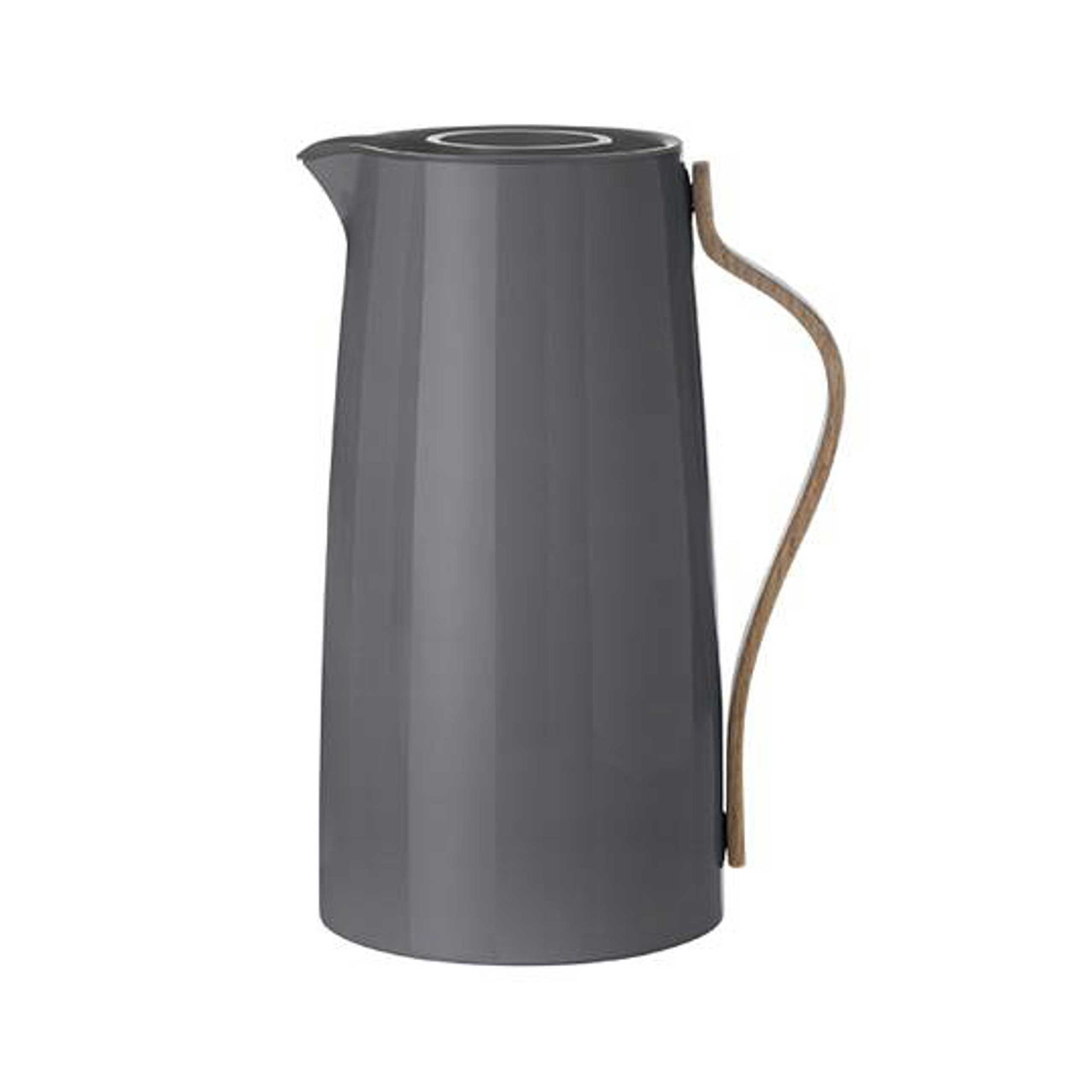 Die Kaffeeisolierkanne von Stelton präsentiert sich in dezentem grau, das sich perfekt in die Reihe Emma einfügt und die elegante, schlanke Form der Kanne unterstreicht.