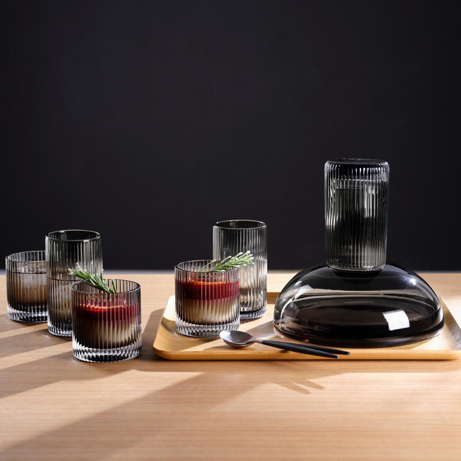 Mit dieser stilvollen Karaffe von ASA mit passendem Trinkglas bringst du modernen Minimalismus auf deinen Tisch! In einem dezenten Grauton gehalten, ist dieses Set praktisch und dabei ein echter Hingucker. Die Karaffe fasst 1,3 Liter und das Glas lässt sich platzsparend und praktisch direkt als Verschluss daraufstellen. Dank des zeitlosen Designs passt sie zu jedem Einrichtungsstil und eignet sich wunderbar für Wasser, Saft oder selbstgemachte Limonade. Gönn dir ein kleines Design-Highlight, das Funktionalität und Ästhetik vereint!