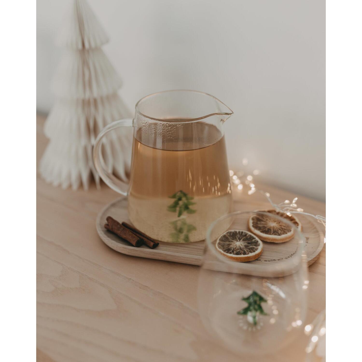 Die Karaffe Tannenfigur von Eulenschnitt setzt auf jeder festlich gedeckten Tafel einen besonderen Akzent und bringt eine gemütliche Winterstimmung in dein Zuhause. Im Inneren des klaren, hochwertigen Glases befindet sich ein kunstvoll gestalteter 3D-Tannenbaum in kräftigem Grün, der sofort Weihnachtsfreude versprüht.