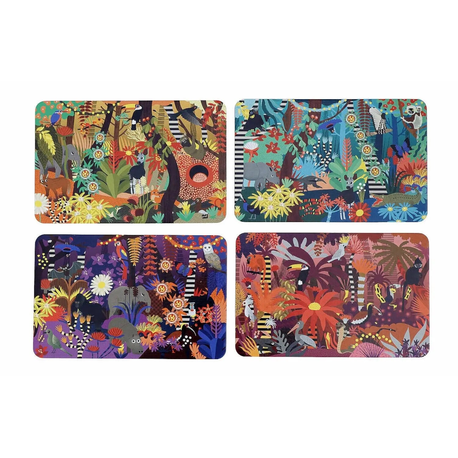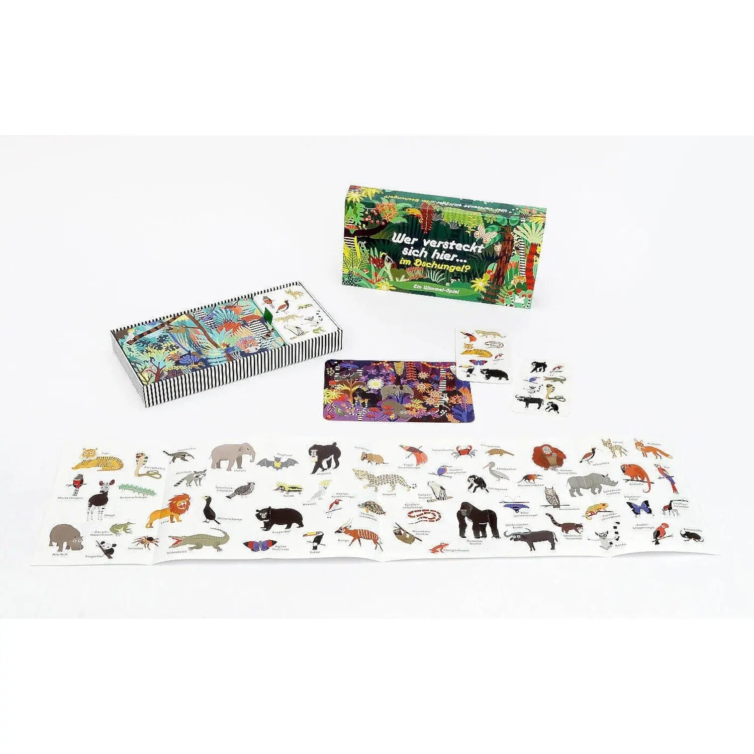 Es gibt zwei Arten von Karten – Dschungelszenen und Tierkarten –, auf beiden tummeln sich viele Dschungeltiere. Aber es gibt immer nur genau ein Tier, das auf beiden Karten zu sehen ist.