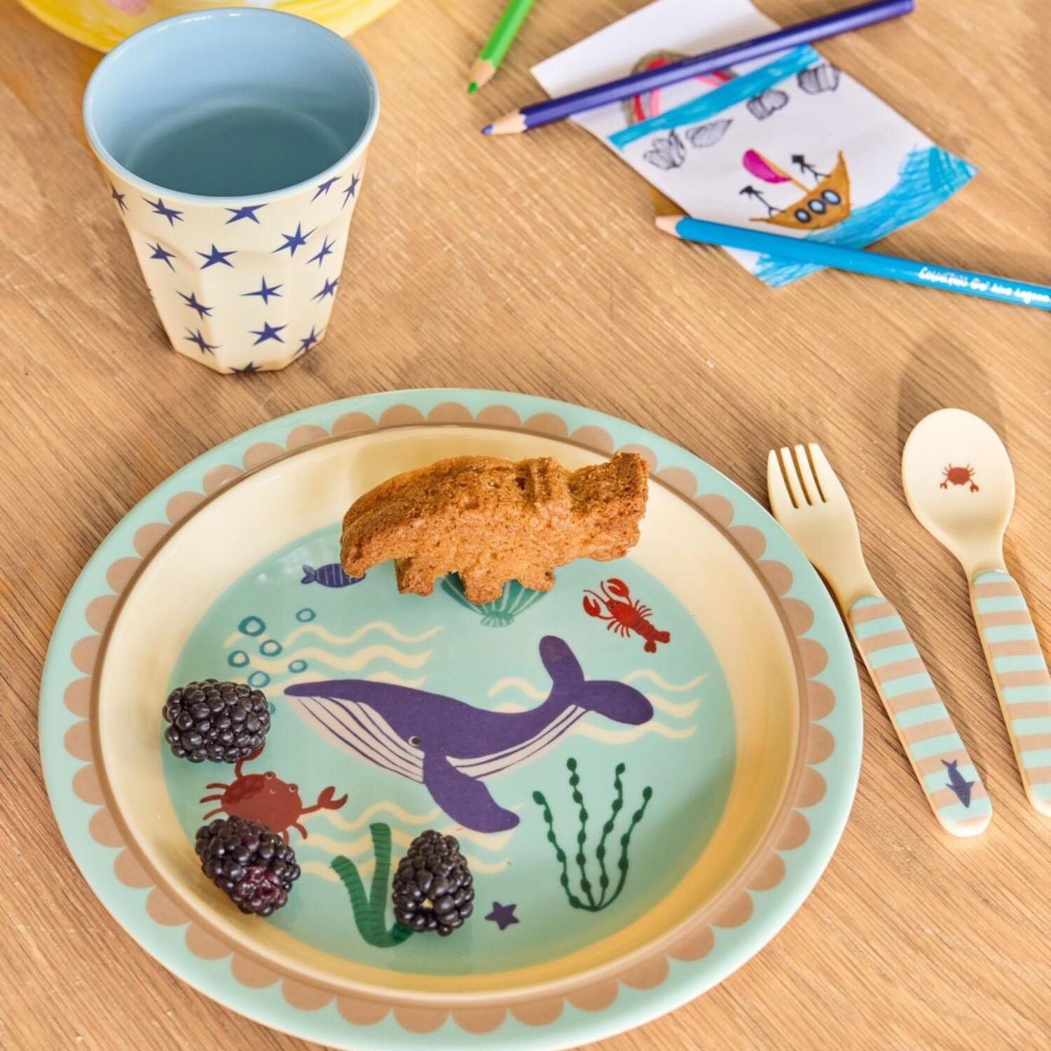 rice Kinderbesteck "Blue Ocean" - 14x3,5x1 cm (Blau)