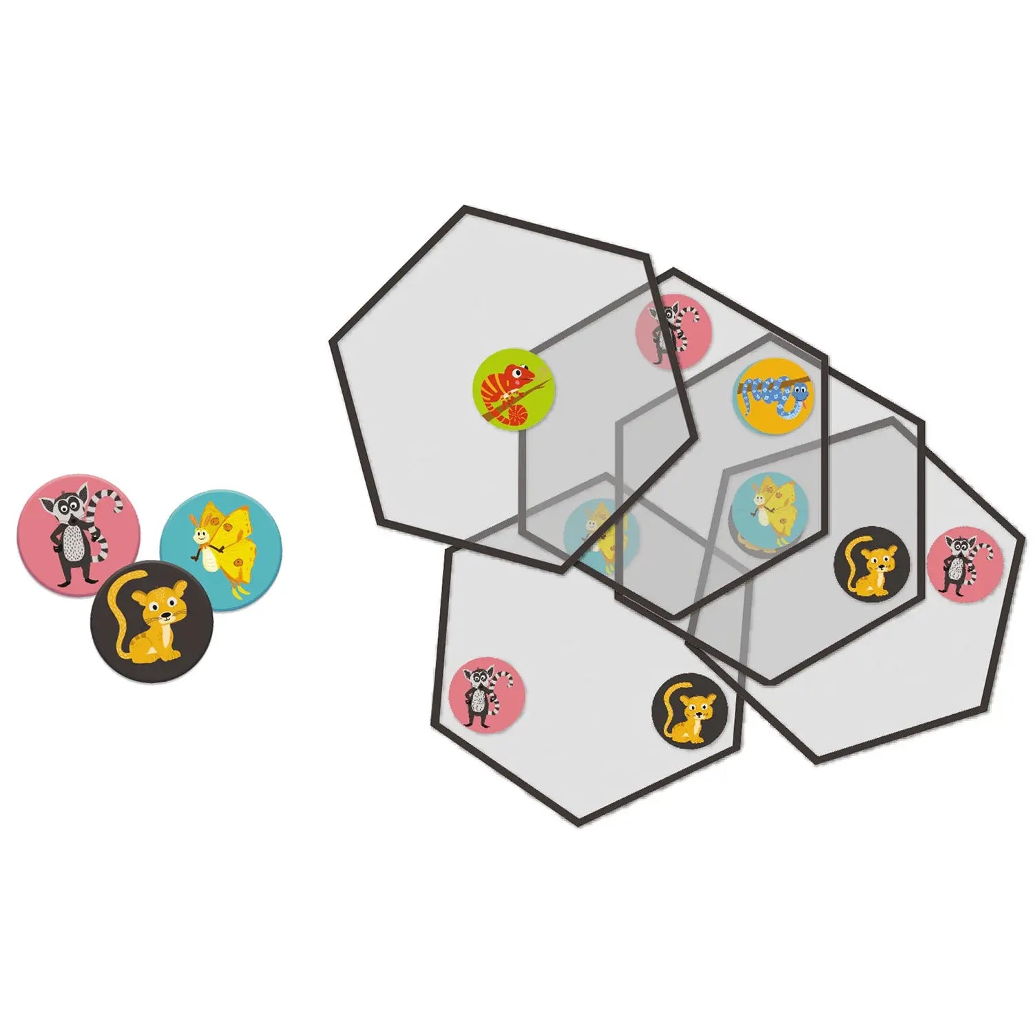 - Inhalt48 durchsichtige Sechseckplättchen, 25 Tierplättchen