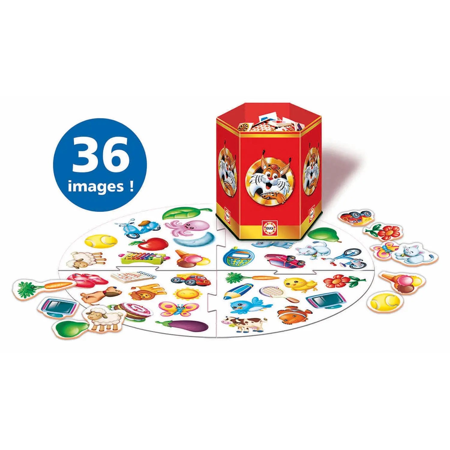 - Inhalt1 Spielplan aus 4 Teilen, 36 Bildkarten, 1 Faltbox, Anleitung