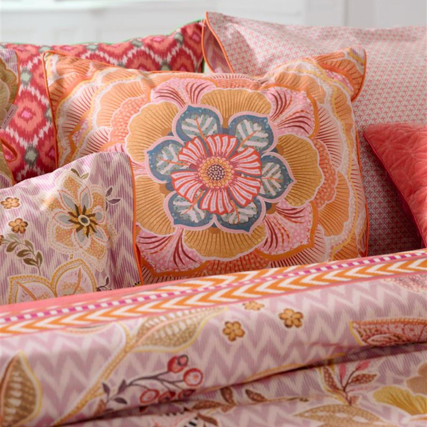 Das Dekokissen "Hakuna" von Pip Studio bringt mit seinen großen, reich verzierten Blumen und Blättern, inspiriert von afrikanischen Wachsdrucken, einen Hauch von Exotik in dein Zuhause. Der fröhliche Zickzackstreifen im Hintergrund verleiht dem Kissen zusätzliche Lebendigkeit und macht es zu einem echten Eyecatcher in deiner Einrichtung. Dank des gesteppten, eleganten Musters mit farbiger Paspel und dem gepolsterten Knopfverschluss strahlt das Kissen eine luxuriöse Optik aus. Besonders praktisch: Das Kissen ist beidseitig verwendbar.