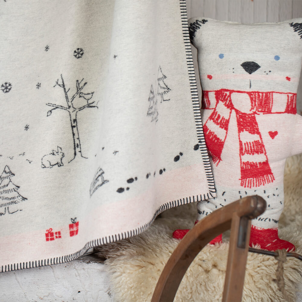 Gefülltes Kissen "JUWEL - Winterbär" (Rohweiß) von David Fussenegger