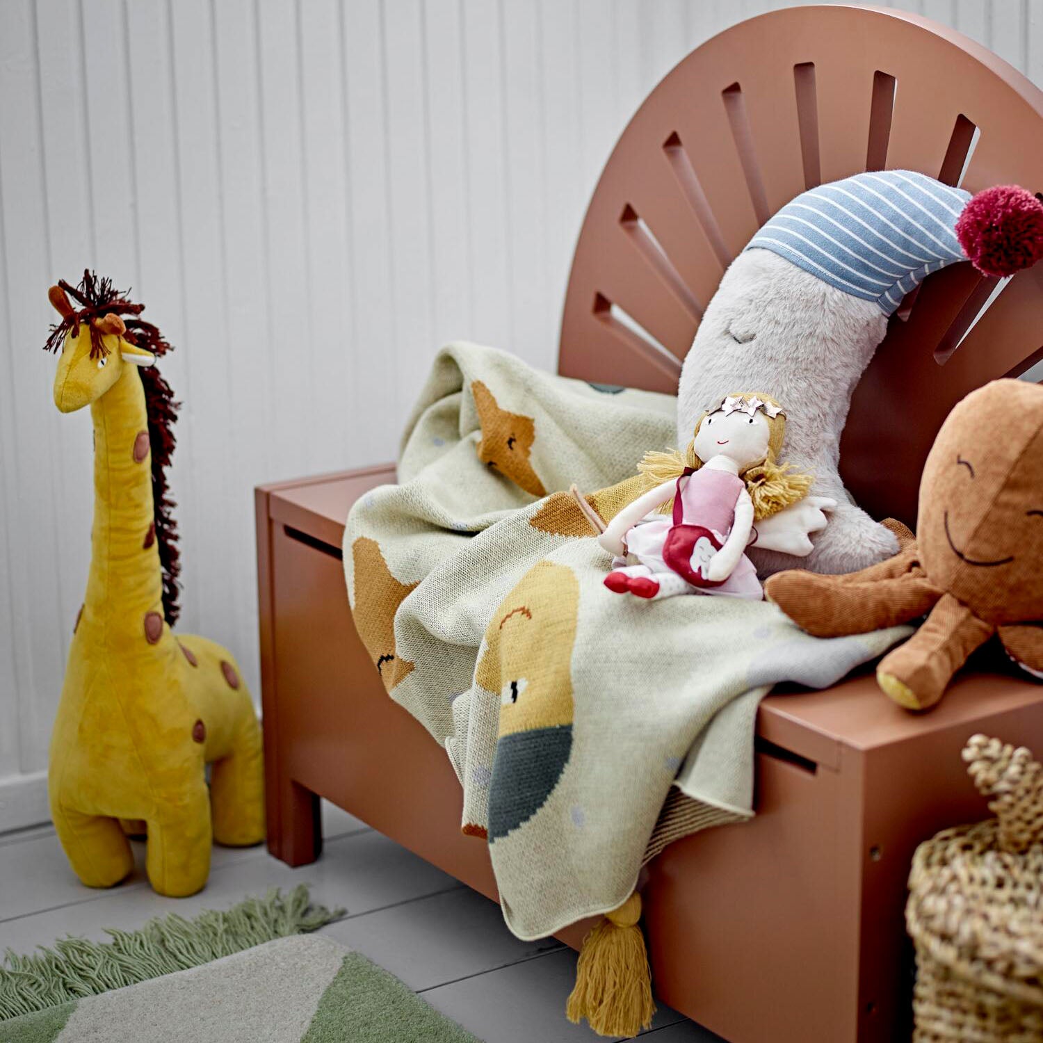 Das Moony Kissen von Bloomingville MINI ist wie geschaffen für das Kinderzimmer! Mit seinem weichen Stoff und den liebevollen Details wird es schnell zum Lieblingsstück der Kleinen. Es eignet sich perfekt als Deko im Bett, zwischen anderen Kissen oder Plüschtieren, und begleitet Deine Kleinen sanft in den Schlaf.