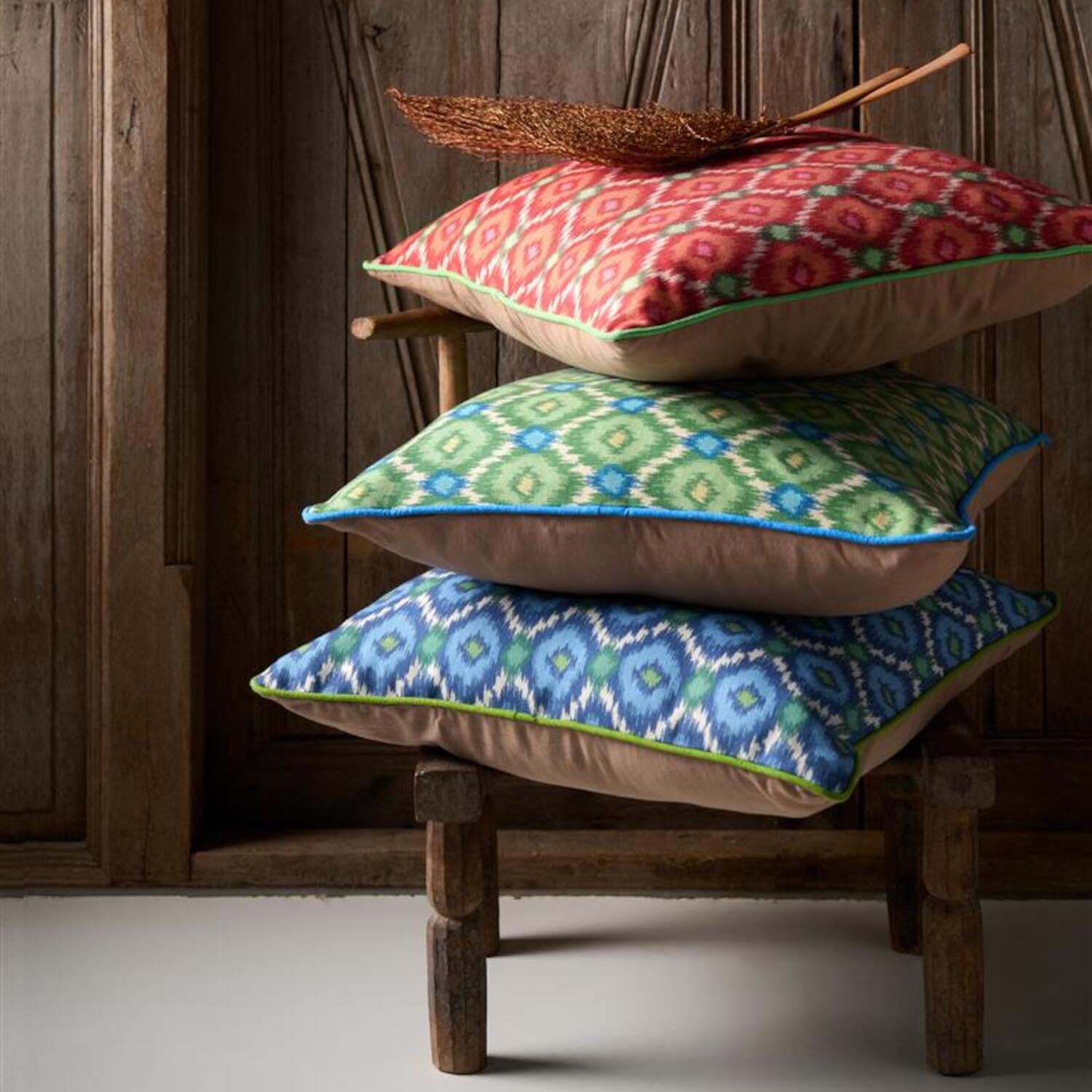 Das Dekokissen "Zazu" von Pip Studio ist ein echter Hingucker für dein Zuhause. Die Vorderseite besticht durch ein farbenfrohes Muster, das durch den "Ikat-Effekt" und die grobe, an Segeltuch erinnernde Textur des Stoffes eine kunsthandwerkliche Optik erhält. Die Rückseite besteht aus khakifarbenem Segeltuchstoff, wodurch ein interessanter Kontrast entsteht. Eine leuchtend farbige Paspel ziert die Ränder des Kissens und verleiht ihm eine zusätzliche stilvolle Note. Der verdeckte Reißverschluss an der Unterseite ermöglicht ein einfaches Ab- und Beziehen. Das Dekokissen ist in mehreren Farbvarianten erhältlich, sodass du die perfekte Ergänzung für dein Interieur findest.