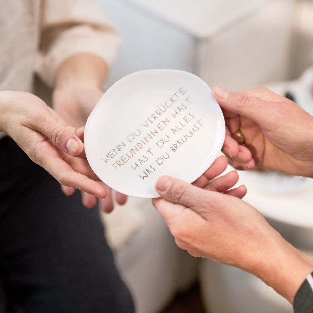 Kleiner Teller "Verrückte Freudinnen" - 14 cm (Weiß)