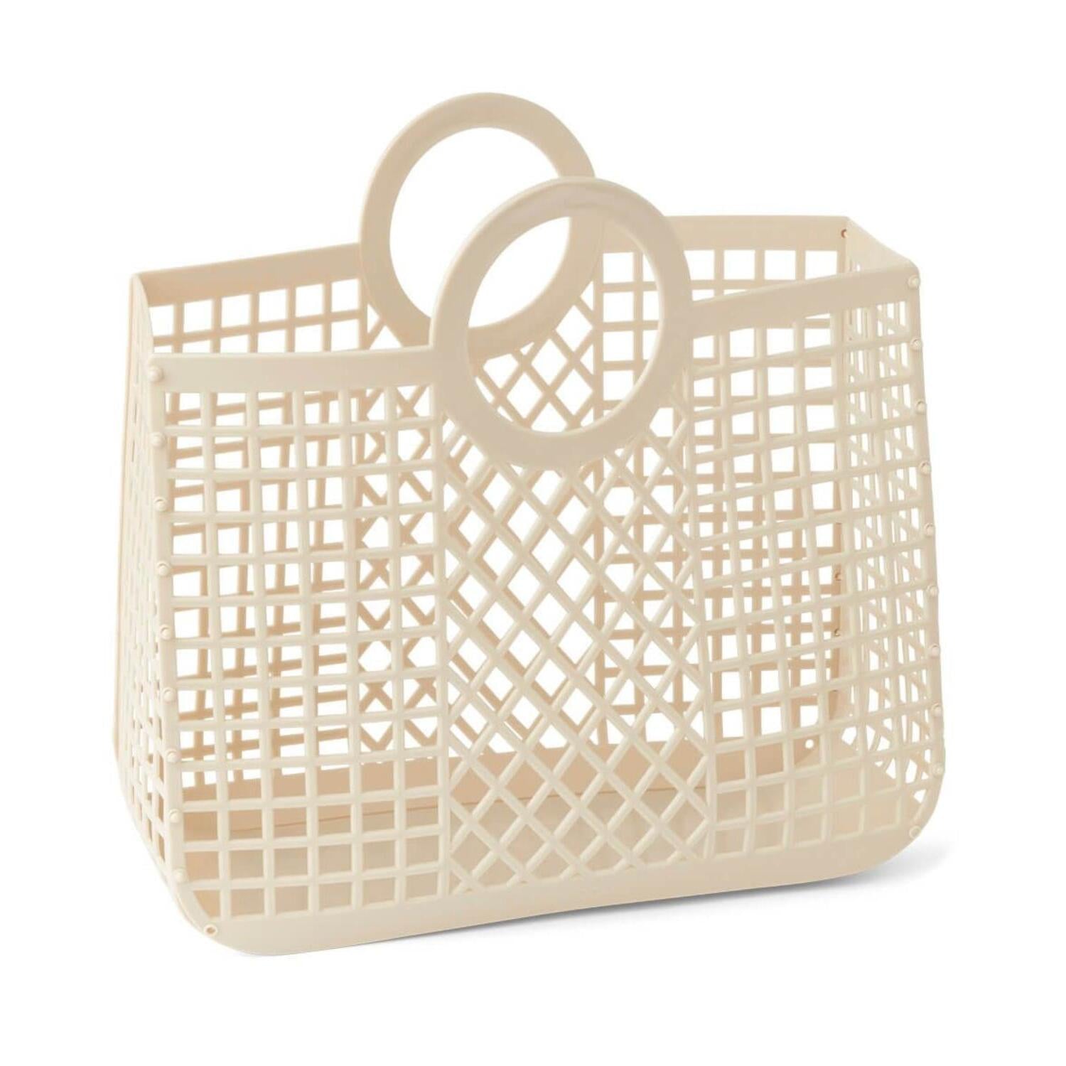 Der Korb Bloom von Liewood vereint skandinavische Leichtigkeit mit praktischem Alltagstalent: ein luftiges Design, das deinem Zuhause oder Strandtag sofort ein freundliches, organisches Flair verleiht. Die runden Griffe und das offene Gittermuster sorgen für einen lässigen Retro-Look und laden dazu ein, Ordnung mit Stil zu schaffen.
