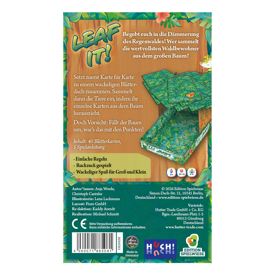 Im Regenwald kündigt sich die Dämmerung an. Allmählich erwacht das Leben zwischen den schaukelnden Blättern des dichten Blätterdachs und die ersten verschlafenen Waldbewohner blinzeln aus ihren Verstecken. Nachdem ihr einen wackeligen Baum aus Karten aufgebaut habt, tastet ihr euch vorsichtig durch das Blattwerk, um den Urwaldriesen Stück für Stück wieder abzubauen. Dabei wollt ihr so viele verschlafene und wertvolle Waldbewohner wie möglich ergattern. Doch Vorsicht: Wer zu gierig ist, bringt das Blätterdach zum Einsturz ... und schenkt den anderen wertvollen Punkte!