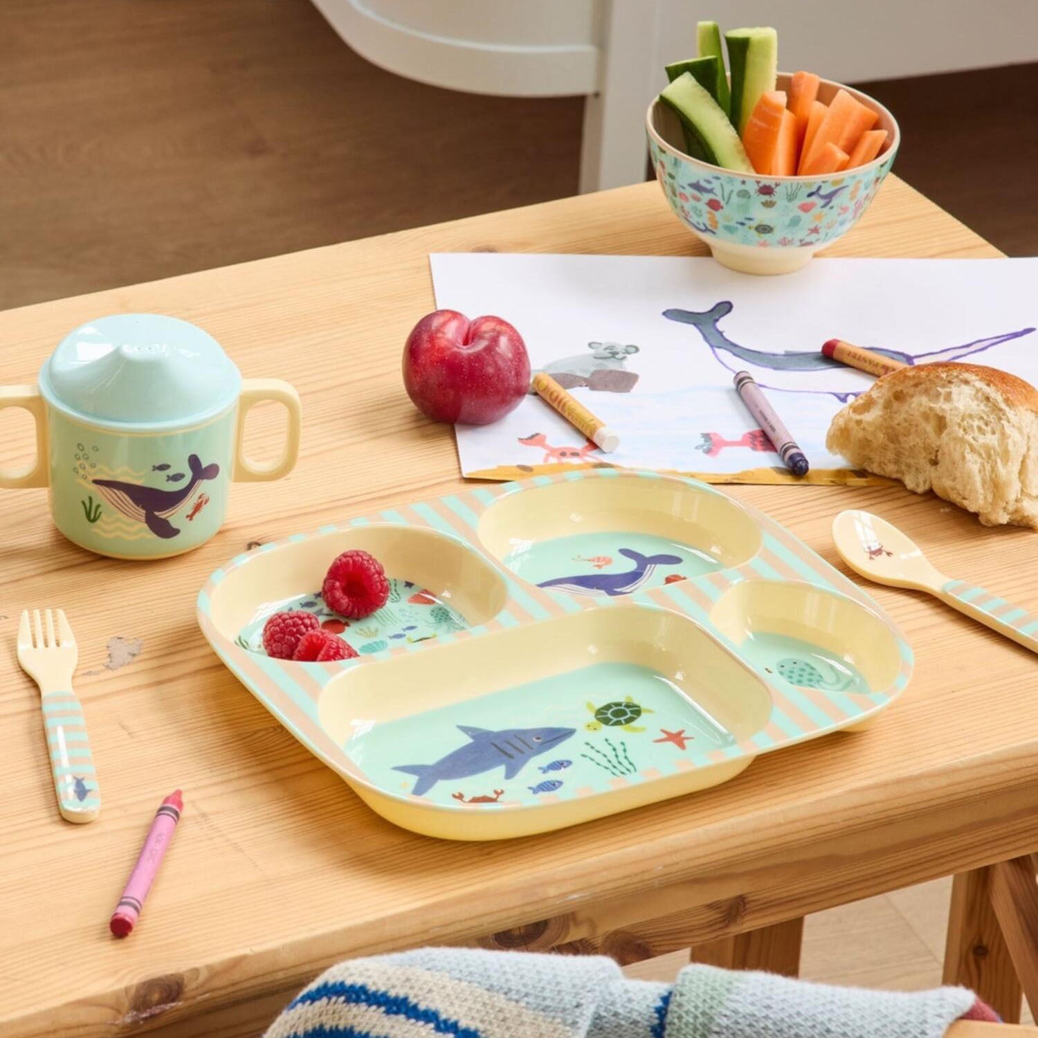 Melamin Kinderteller mit 4 Fächern "Blue Ocean" - 24x,5x21,5x2,5 cm (Blau)