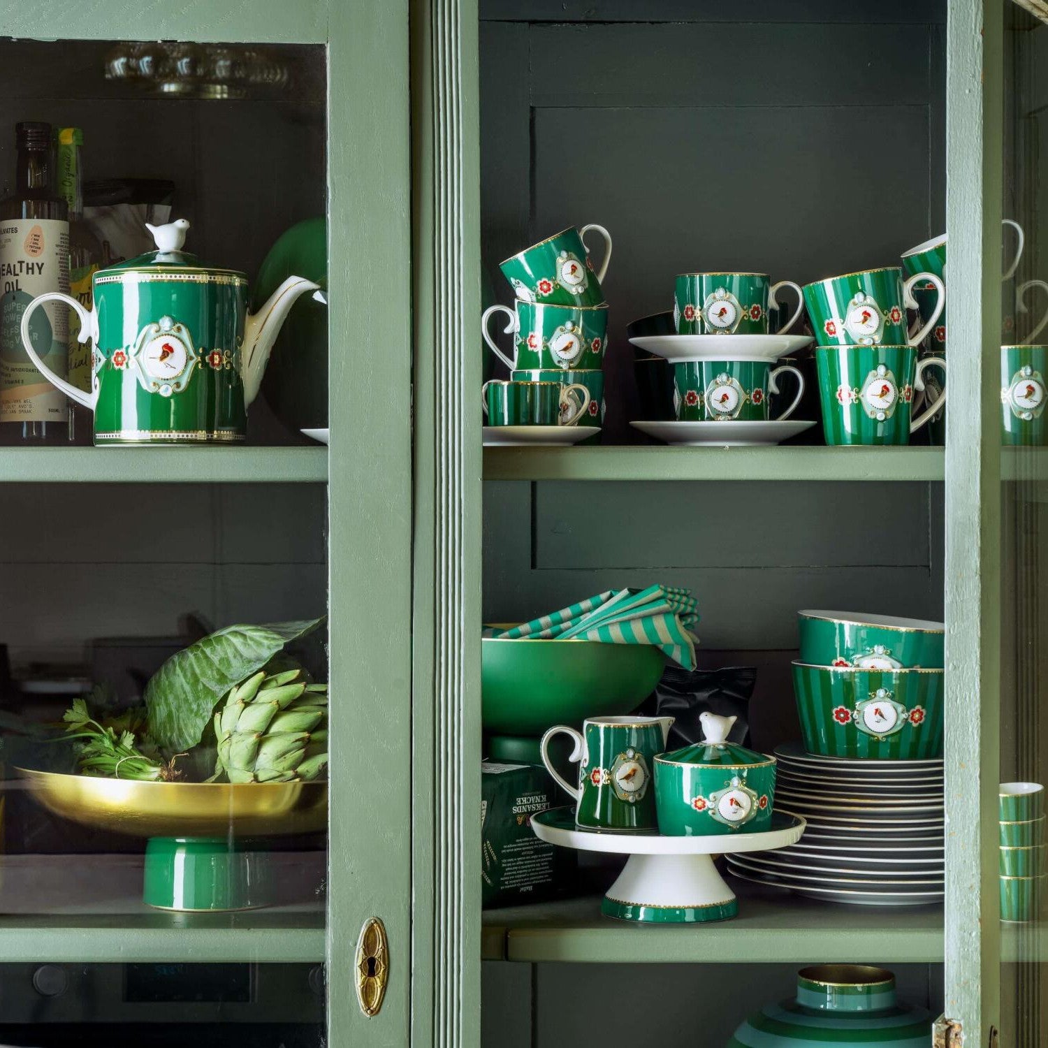 Die zauberhaft schöne Etagere aus der Serie "Love Birds Stripes" von Pip Studio setzt dein Gebäck gekonnt in Szene. Egal ob für Kekse, Muffins, kleine Kuchen oder Törtchen - hier findet alles seinen stilvollen Platz. Wundervolle Grüntöne im Streifenlook zieren das Tablett aus hochwertigem Porzellan. Goldfarbene Details runden das Design perfekt ab. Ein absolutes Muss für die perfekte Kaffeetafel!