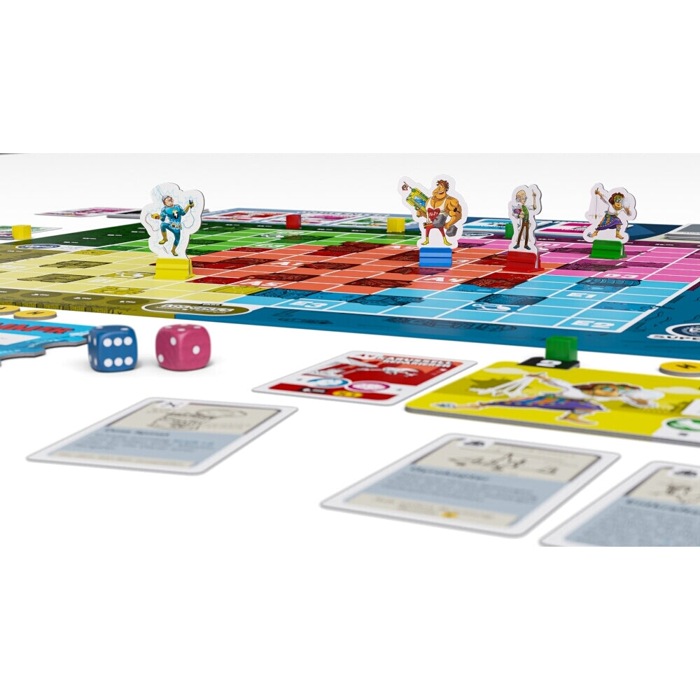 Du wählst eine Mission für deinen Helden - und startest mit ihm direkt ins Abenteuer! Mit dem Würfel und deinen besonderen Fertigkeiten kämpfst du dich durch verschiedene Aufträge und gewinnst neue Fans! Als Belohnung für gemeisterte Aufgaben winken abgefahrene Ausrüstungen wie das Taschengehirn und die Raketenstiefel! Aber nimm dich in Acht: Triffst du unterwegs auf andere Spieler, kommt es zum Kräftemessen! Welcher Held kann die meisten Fans begeistern und wird zum Star der Stadt?