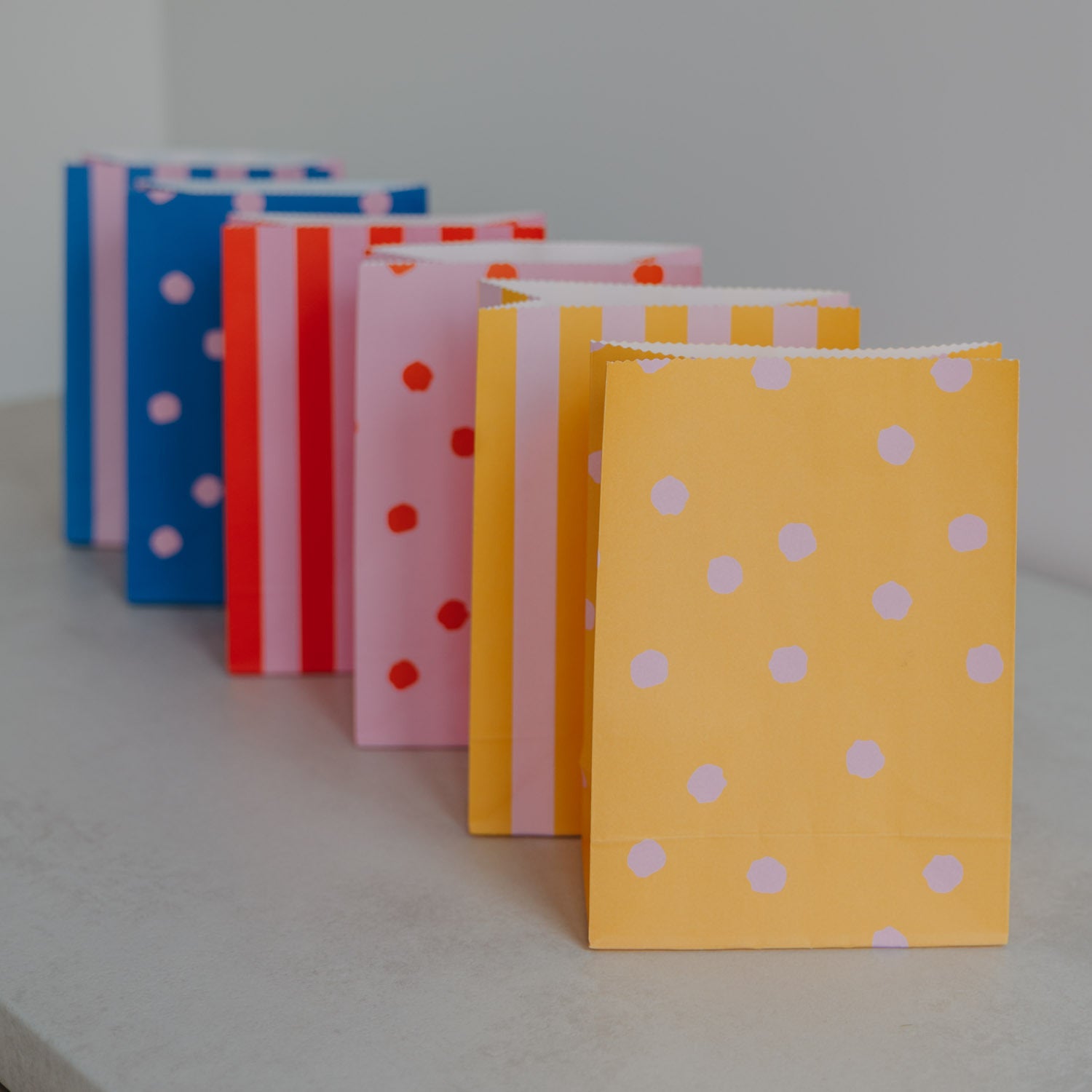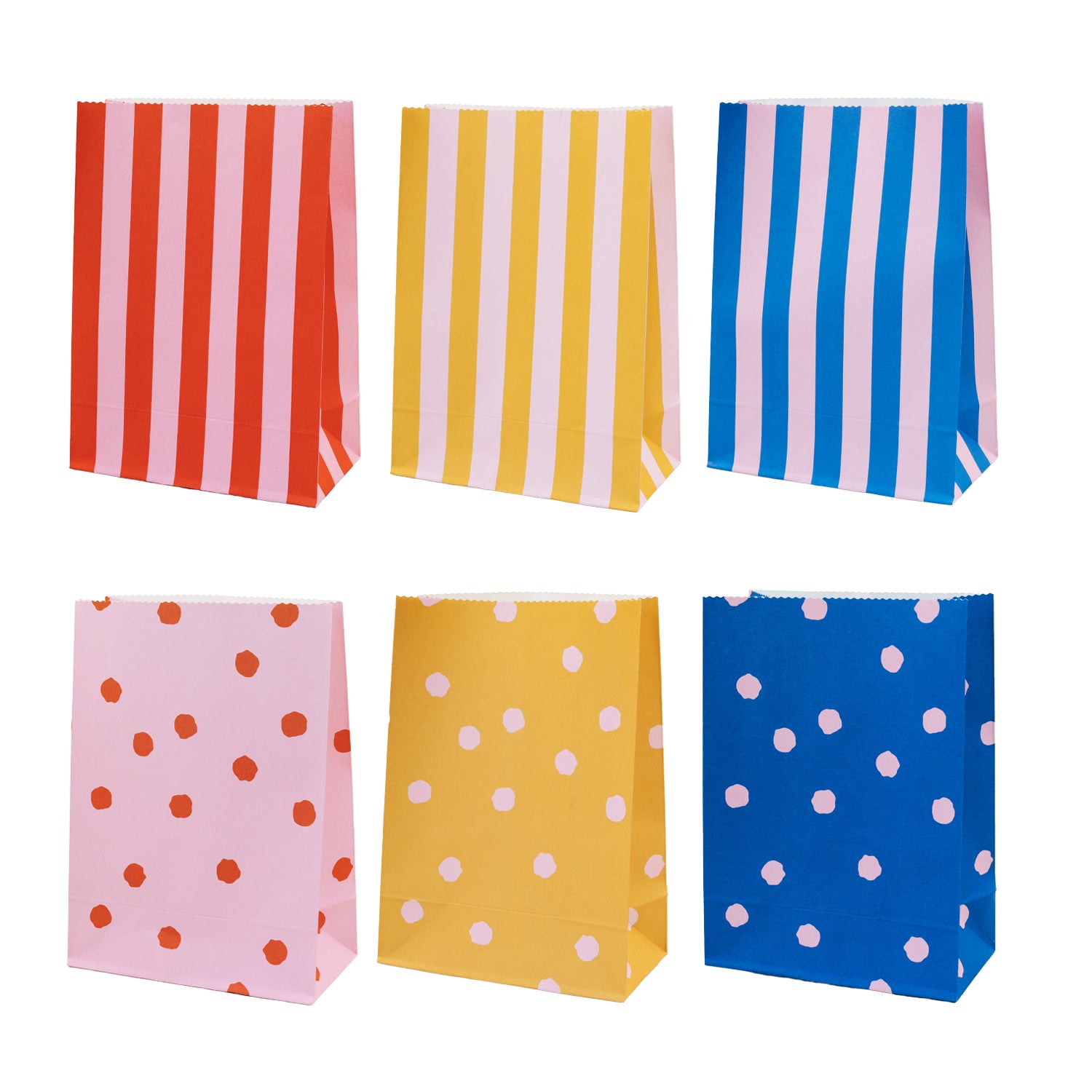 Papiertüten "Streifen & Punkte" im 6er-Set - S (Rosa)
