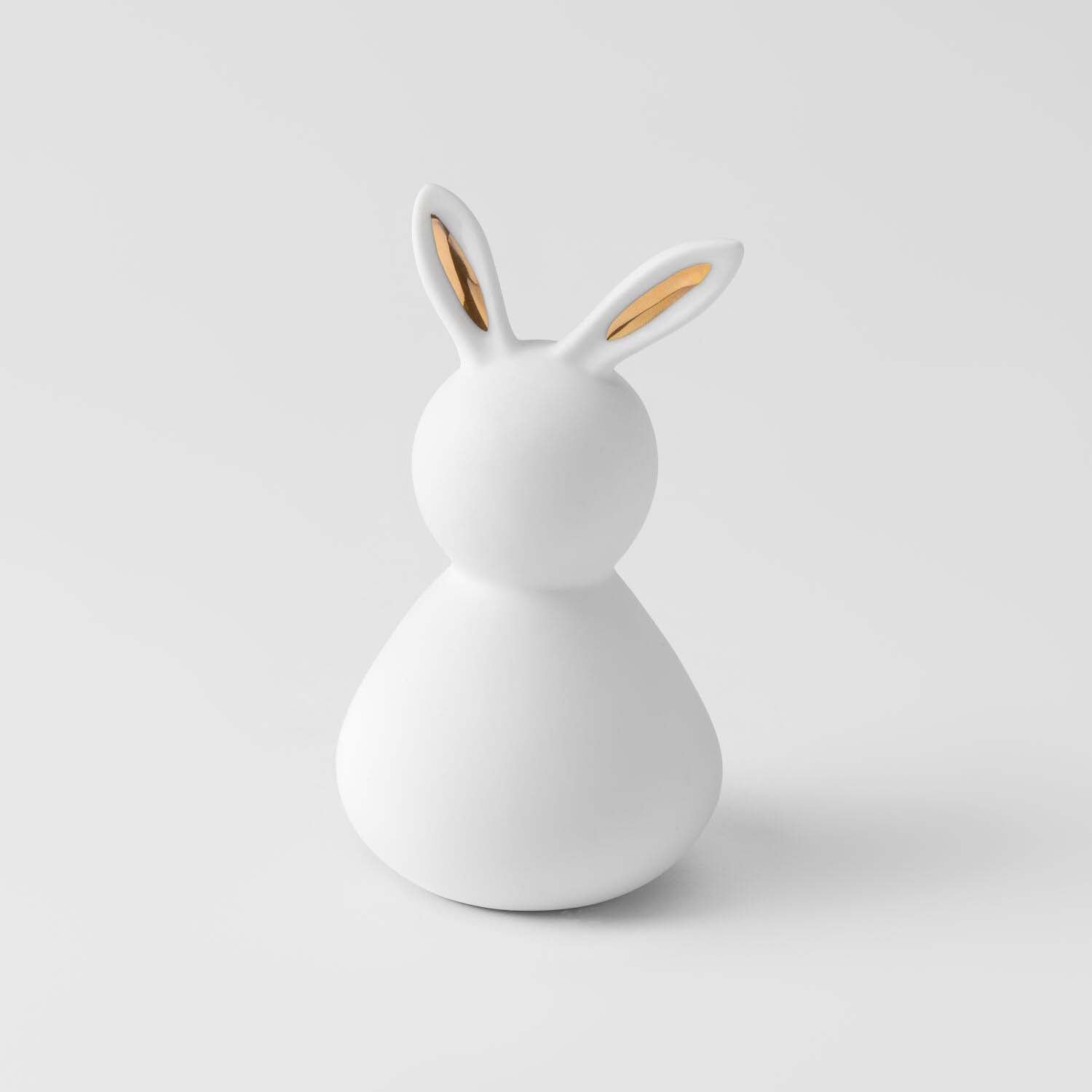 Porzellanhase "Dame - goldene Ohren" - 7x13 cm (Weiß/Gold)