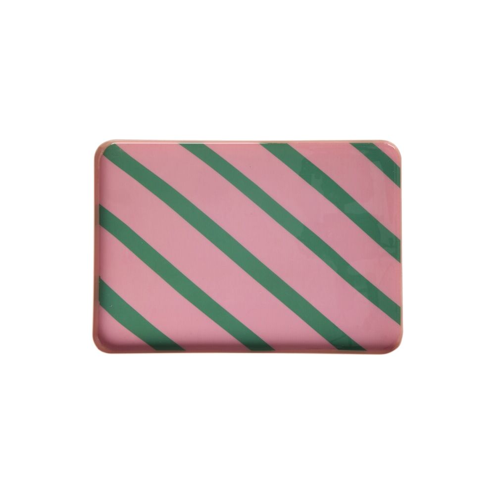 Rechteckiges Metalltablett "Stripes" - L (Pink/Grün)