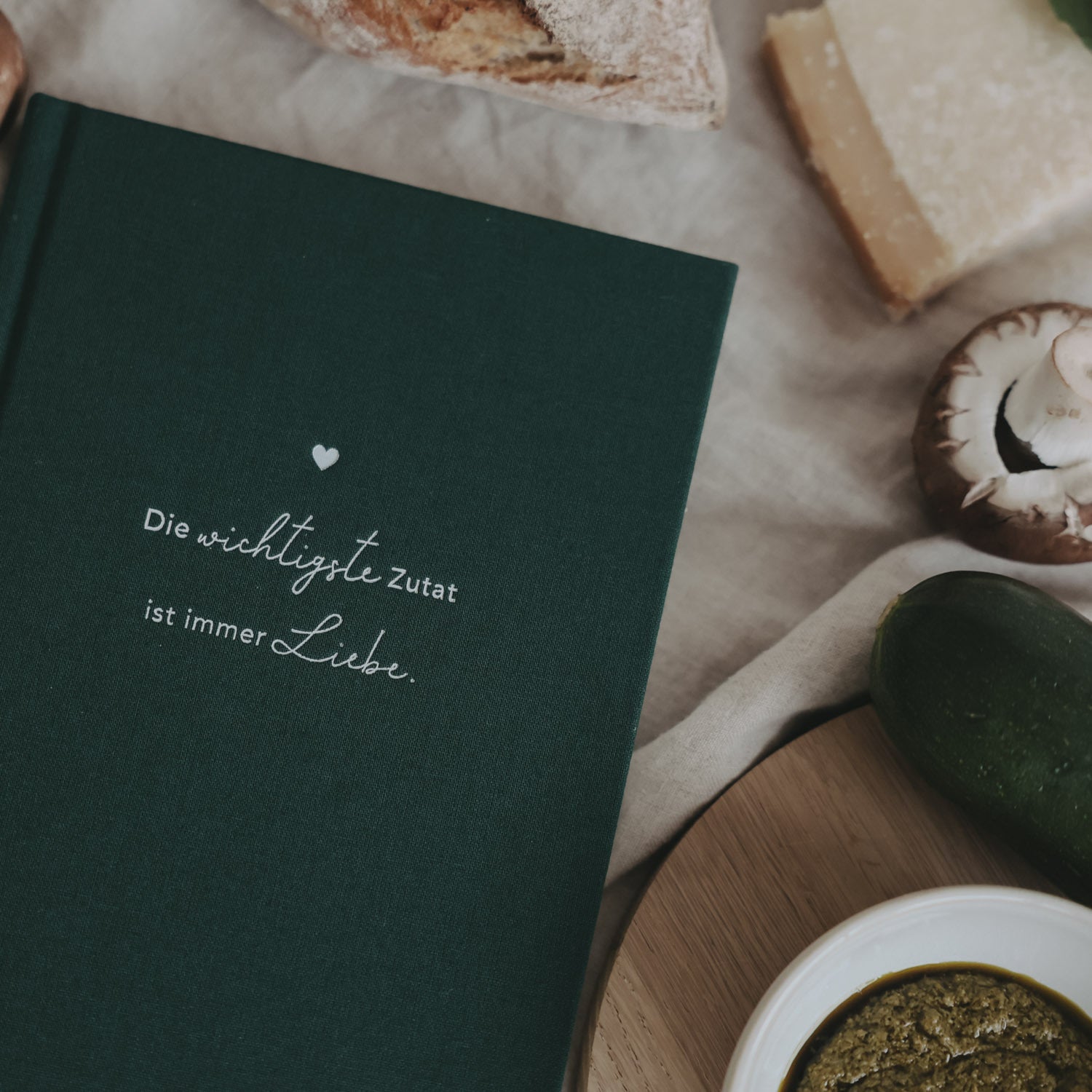 Rezeptbuch "Wichtigste Zutat" - 21,5x14,6x1,5 cm (Dunkelgrün)