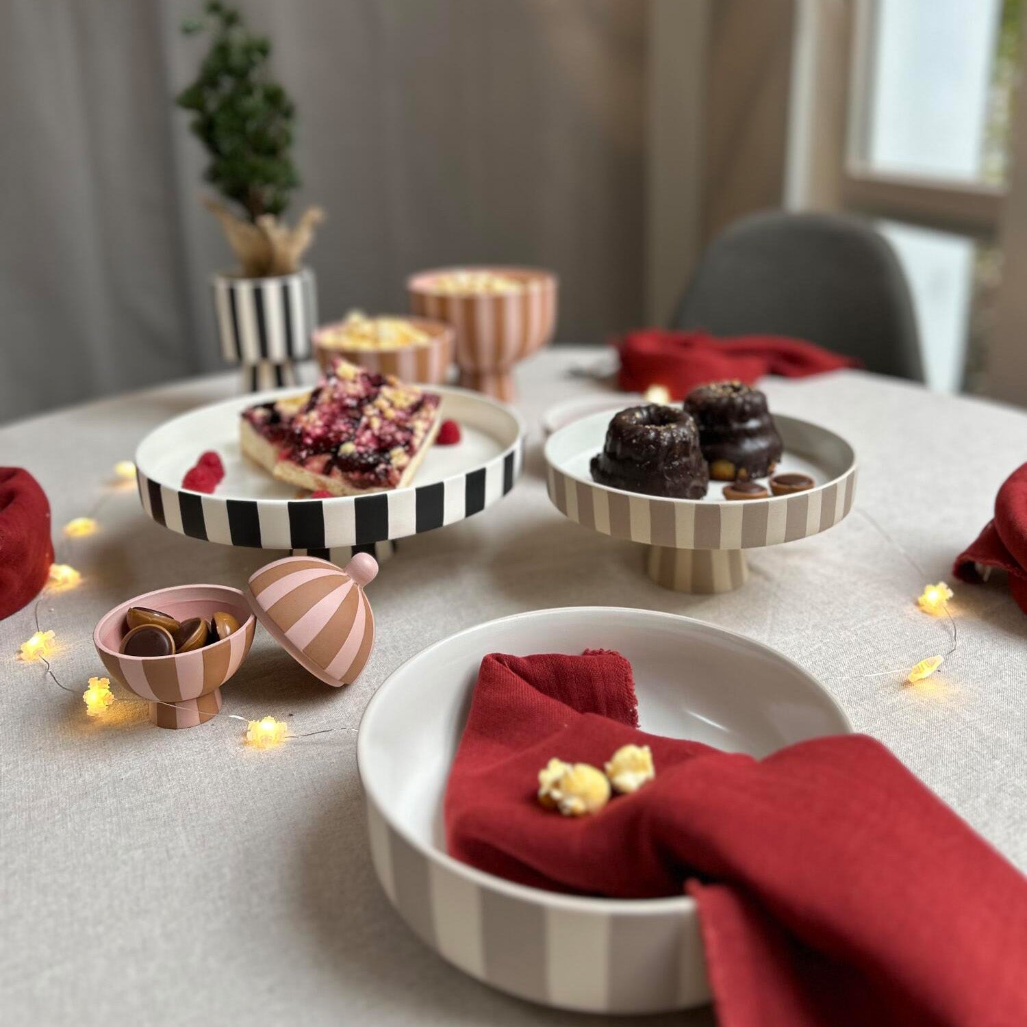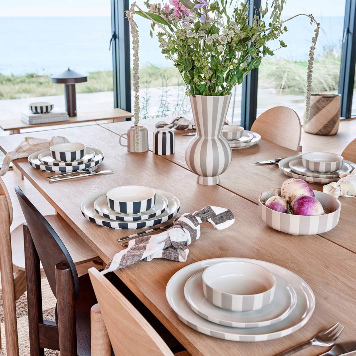 Dieses einzigartige Kunstwerk kombiniert minimalistische Eleganz mit verspielter Raffinesse und verleiht deinem Zuhause eine unvergleichliche Note. Mit ihrem markanten Streifendesign und den harmonischen Farbnuancen zieht die "Toppu" Schale alle Blicke auf sich - ob als stilvolles Dekorationsobjekt oder auch als kunstvolle Präsentation von Blumen und Früchten. Lass dich von der zeitlosen Schönheit dieser Designikone verzaubern und bringe ein Stück nordischer Harmonie in dein Zuhause.