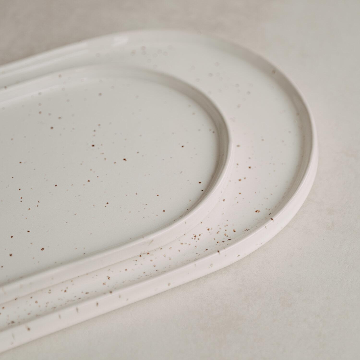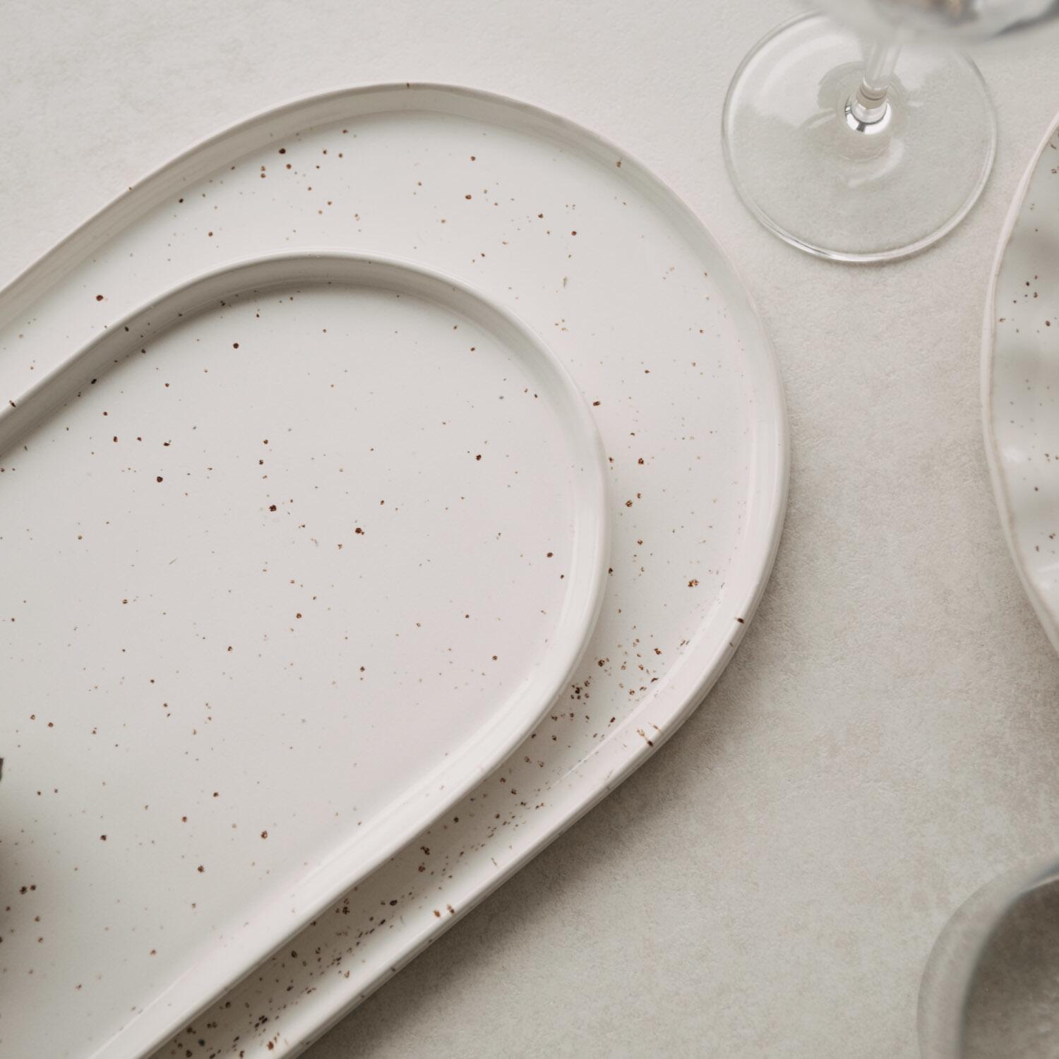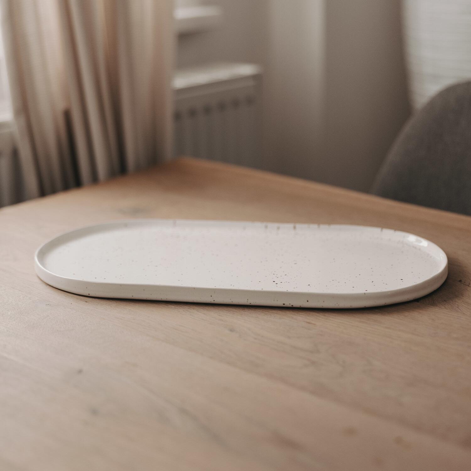 Gefertigt aus hochwertigem Steingut mit feinem Sprenkelmuster ist jede Platte ein Unikat. Sie gehört zur beliebten Steingut-Serie von Eulenschnitt und harmoniert perfekt mit den passenden Bechern, Tellern und Schalen der Kollektion.