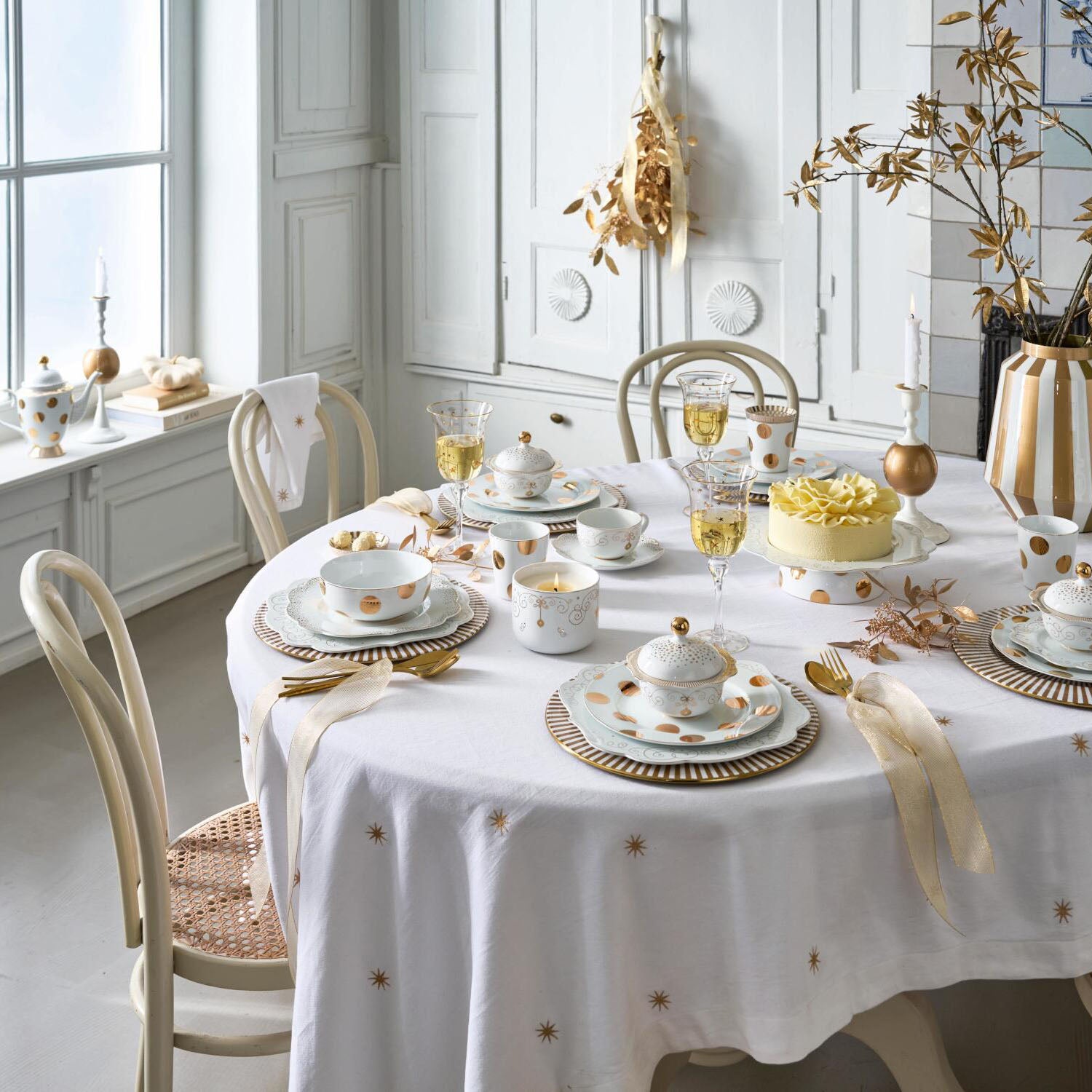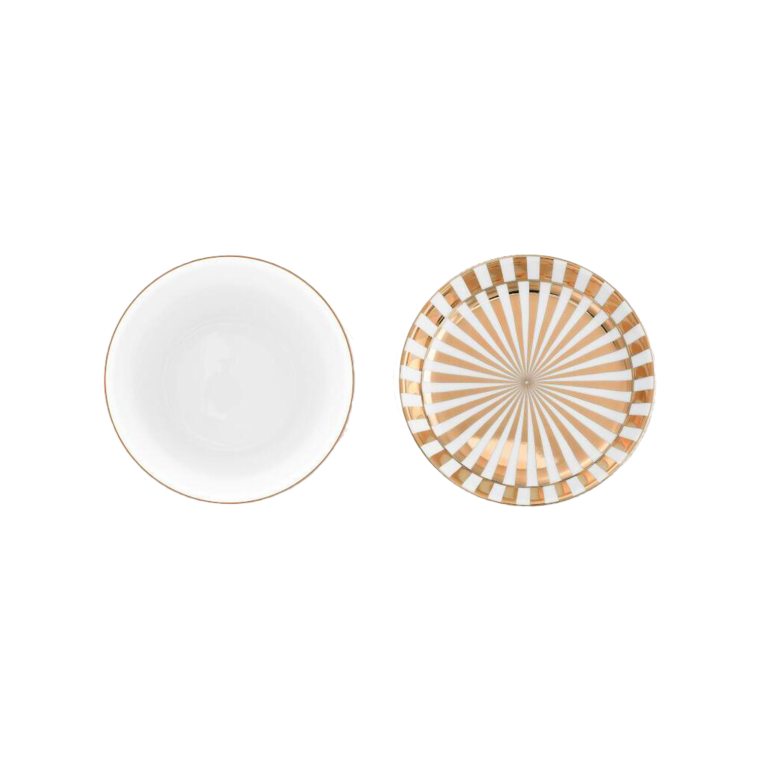 Set aus Becher mit Teebeutel-Ablageteller "Dot Delight" - 16x16 cm (Weiß/Gold)