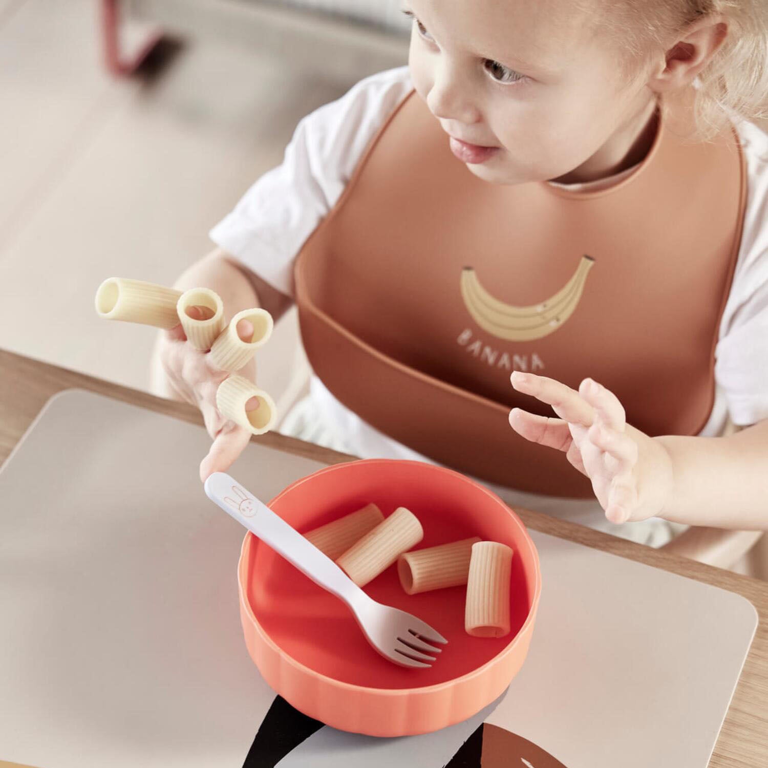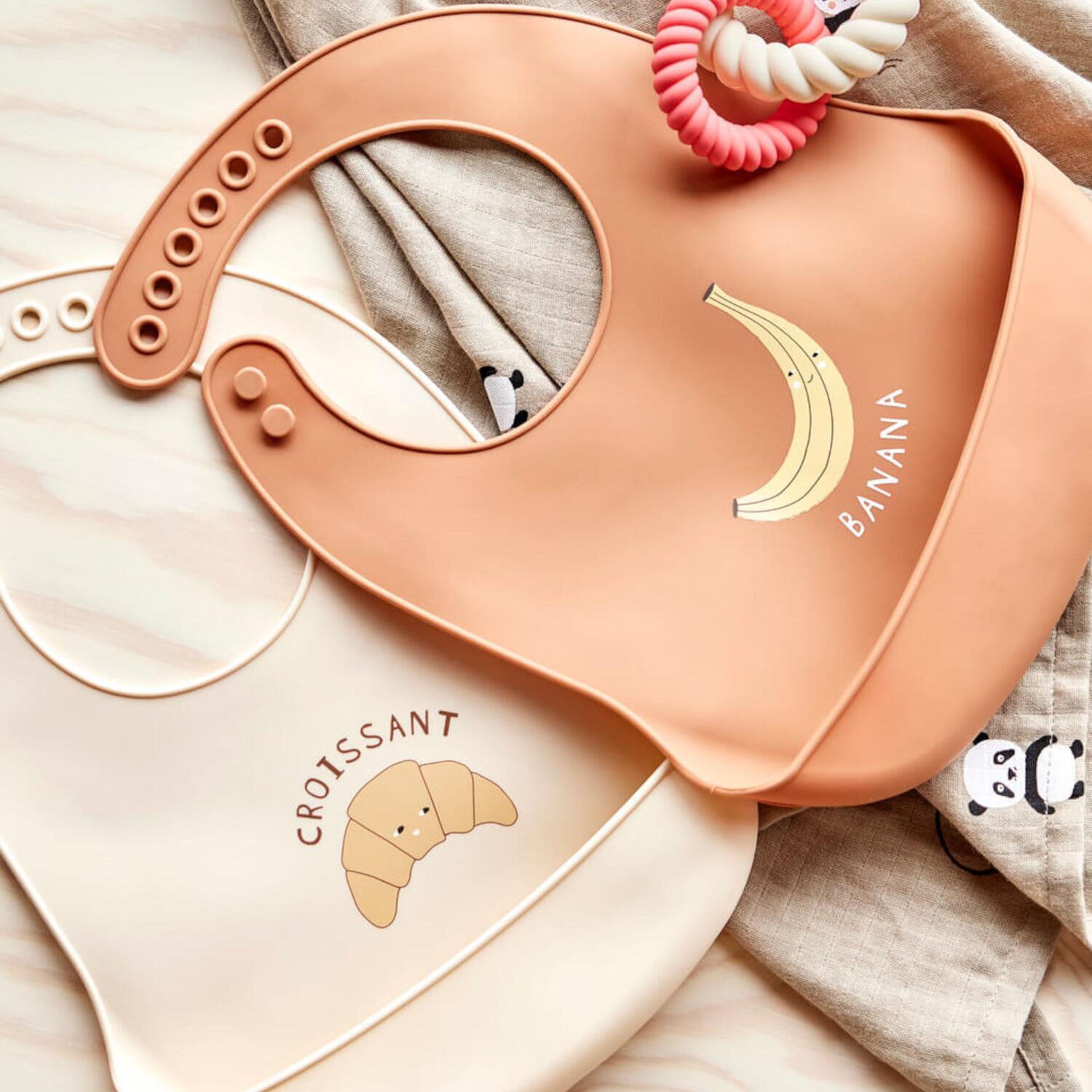 OYOY Mini Silikon-Lätzchen "Yummy" im 2er-Set - 27x19x5 cm (Caramel/Butter)