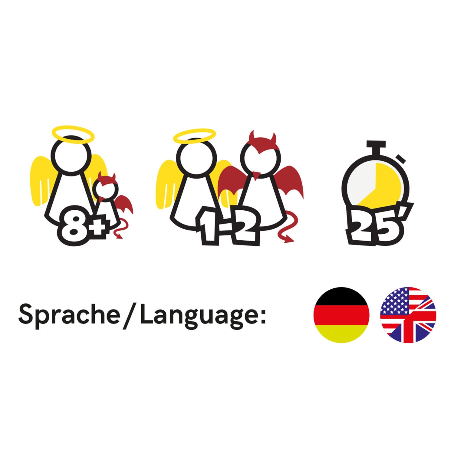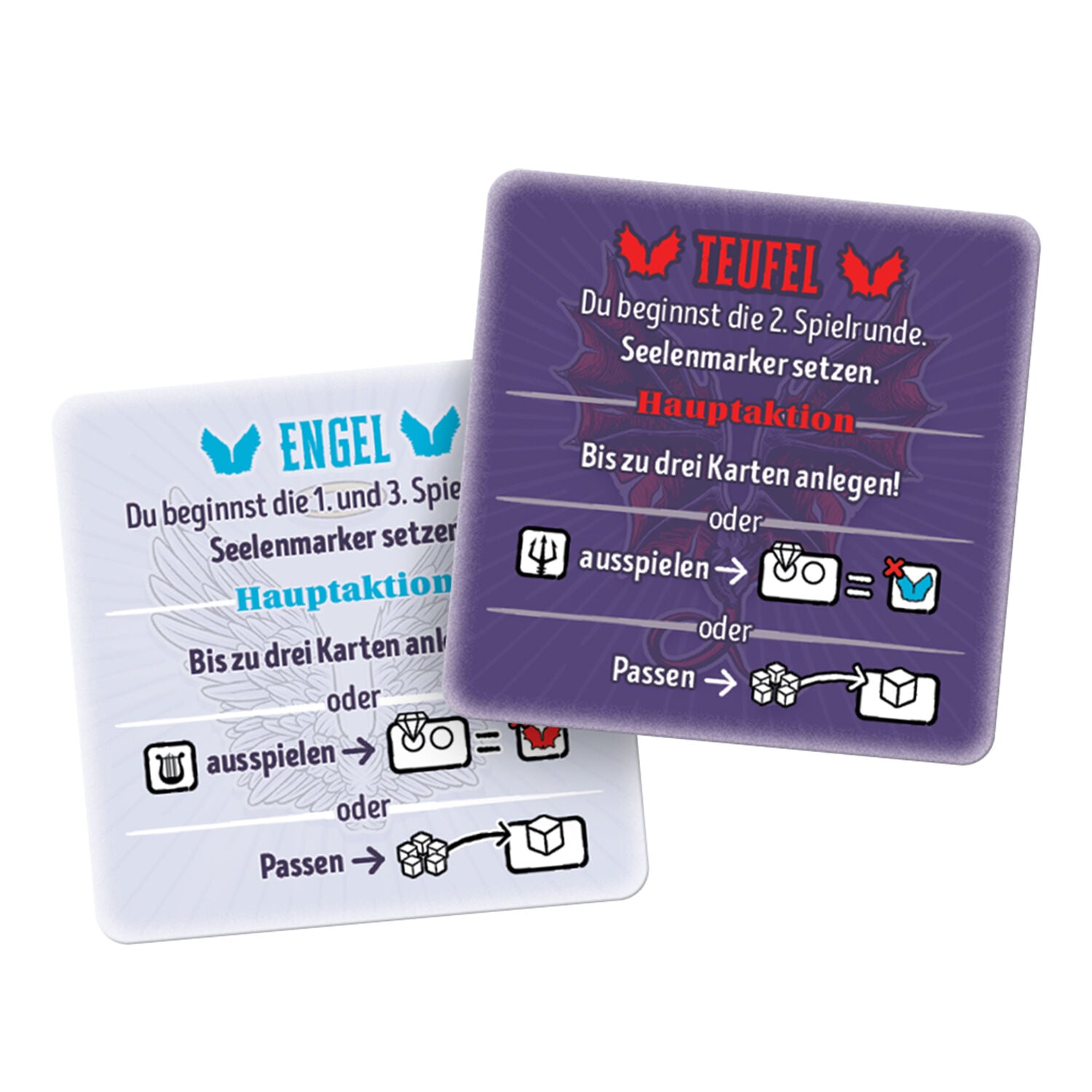 Engel oder Teufel? In „Soul Dice“ entbrennt ein packender Wettstreit um die Seelen der Menschheit! Werdet ihr als Engel die Menschen ins Licht führen? Oder als Teufel ihre dunkle Seite entfesseln? Setzt eure Würfel und Kristalle mit Strategie und Geschick ein, um die Seelen in eure Reihen zu ziehen. Aber Vorsicht: Keine Seele ist wie die andere! Einzigartige Sonderfähigkeiten helfen euch dabei, die Gegenseite auszutricksen. „Soul Dice“ ist ein kompaktes Würfeleinsetzspiel. In insgesamt drei Runden nutzt ihr Taktik, Karten und Würfel, um den eigenen Einfluss auf die Seelen der Menschen zu erhöhen. Ihr wählt aus eurem Vorrat Würfel aus, um damit strategisch geschickt Karten an die Seelen anzulegen. Dabei gilt es, unterschiedliche Anlegeregeln zu beachten. Manche Seelen hingegen haben Effekte, die sofort ausgelöst werden. Durch asynchrone Fähigkeiten haben Engel und Teufel unterschiedlichen Einfluss auf das Spielgeschehen.