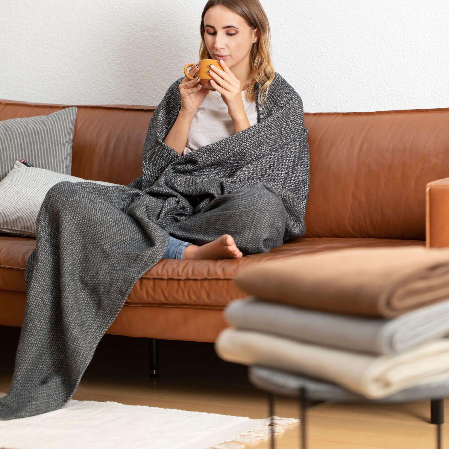 Mach es dir gemütlich: mit der hochwertigen Wohndecke "STELLA" von David Fussenegger zieht Behaglichkeit in dein Zuhause ein. Weich und geschmeidig lädt die Decke zum Kuscheln auf der Couch ein oder wird zum eleganten Überwurf für Sofa und Bett. Die strukturierte Oberfläche, zeitlose Farbgebung und der zarte Fransensaum sorgen für einen stylisch, gemütlichen Look.